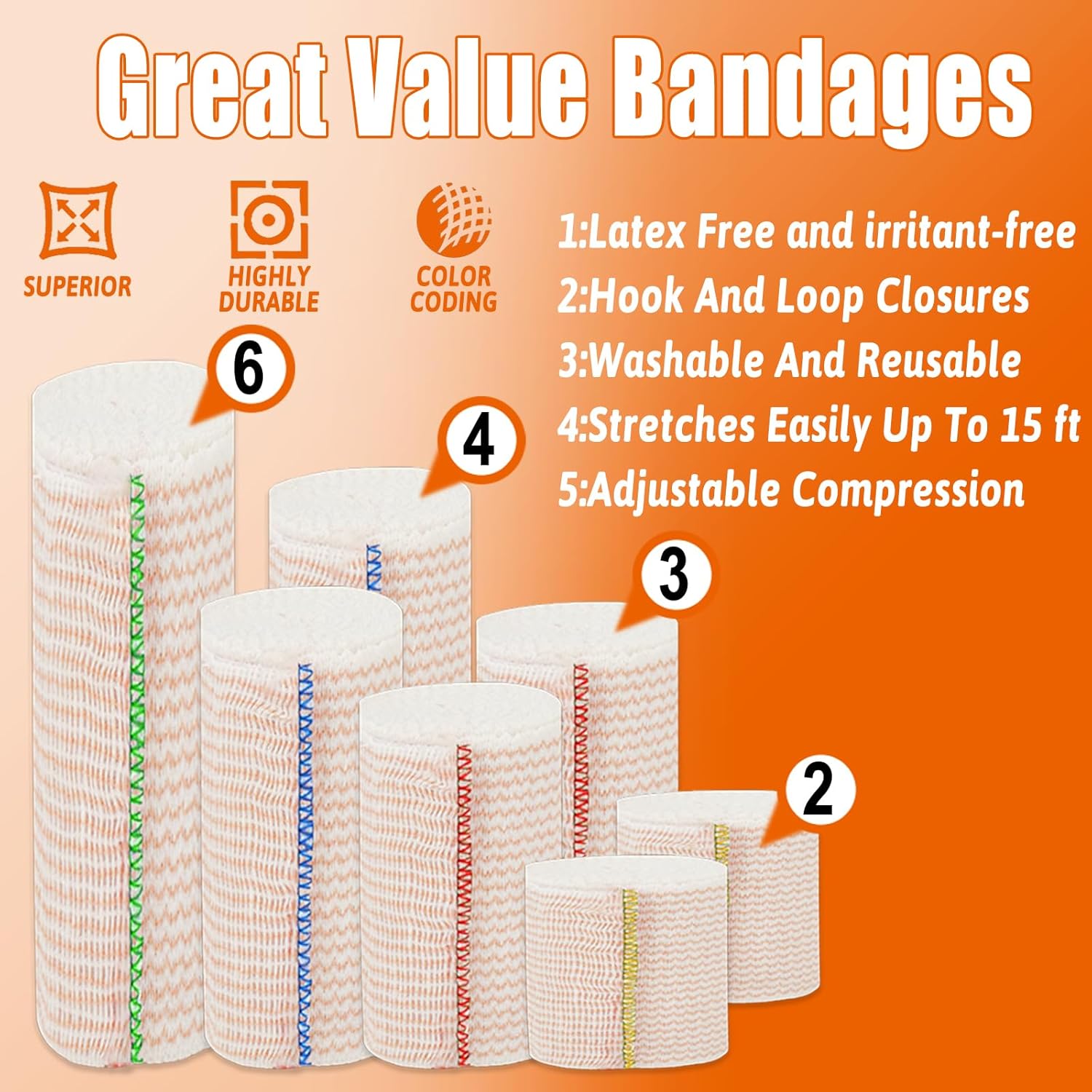 - Washable and REUSABLE BANDAGE WRAP:After many washings and reuse, the compression bandages remain elastic and breathable not easy to wear out or unravel, making them a great choice for athletes, schools, hospitals, travelers and parents.