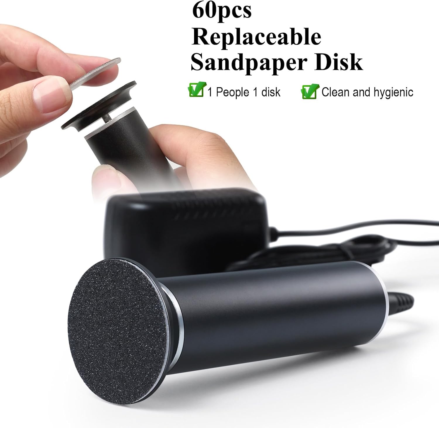 - REPLACEABLE SANDPAPER DISCS: Comes with 60 self-adhesive sandpaper disks that are replaceable, easy to paste and remove, 1 person 1 sandpaper, clean and convenient.