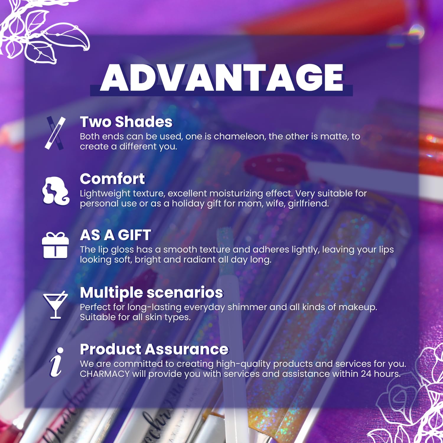 CHARMACY Multichrome Double Head Non-Stick Lip Gloss, Metallic Colourful Lip Glaze, Anti-transfer, Long Lasting Waterproof Liquid Lipstick Makeup (#08)