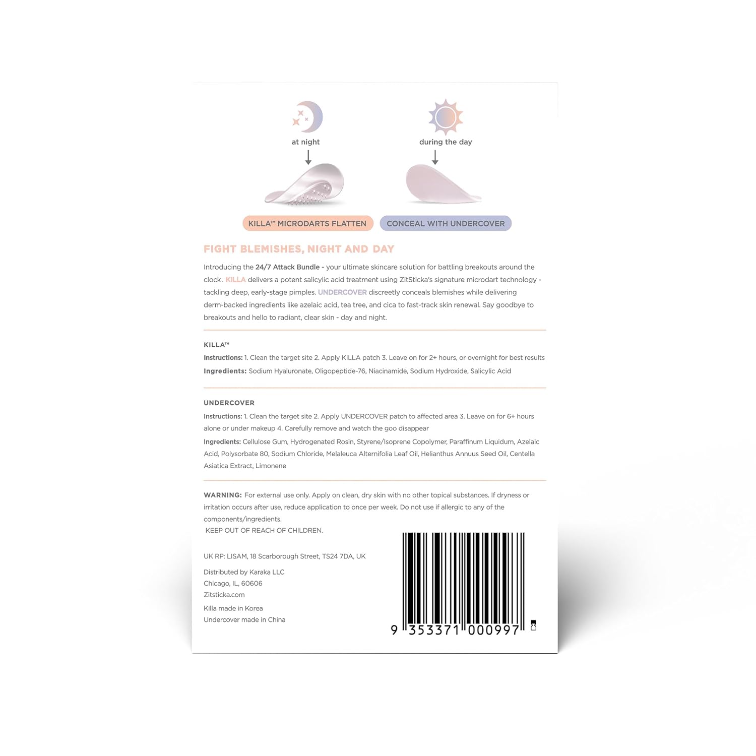 - Complete Face Care Kit: The 24/7 Attack Bundle includes 2 KILLA patches and 12 UNDERCOVER patches, providing you with a comprehensive acne treatment solution. This versatile kit allows you to customize your skincare routine based on your specific needs, whether you're targeting stubborn deep early-stage pimples or managing whiteheads that are ready to pop.