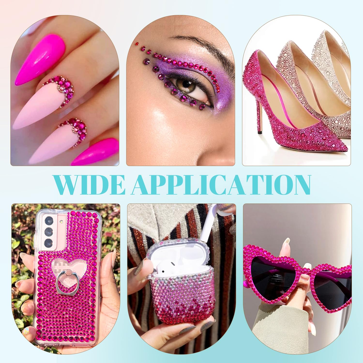 6100Pcs Resin Rhinestones for Crafting with 2Pcs 10ml B7000 Jewelry Glue, 1 Box Flatback Crystals Diamond (Hot Pink) for Bedazzling Crafts DIY Nail Art Non Hotfix Gems for Clothing Shoes