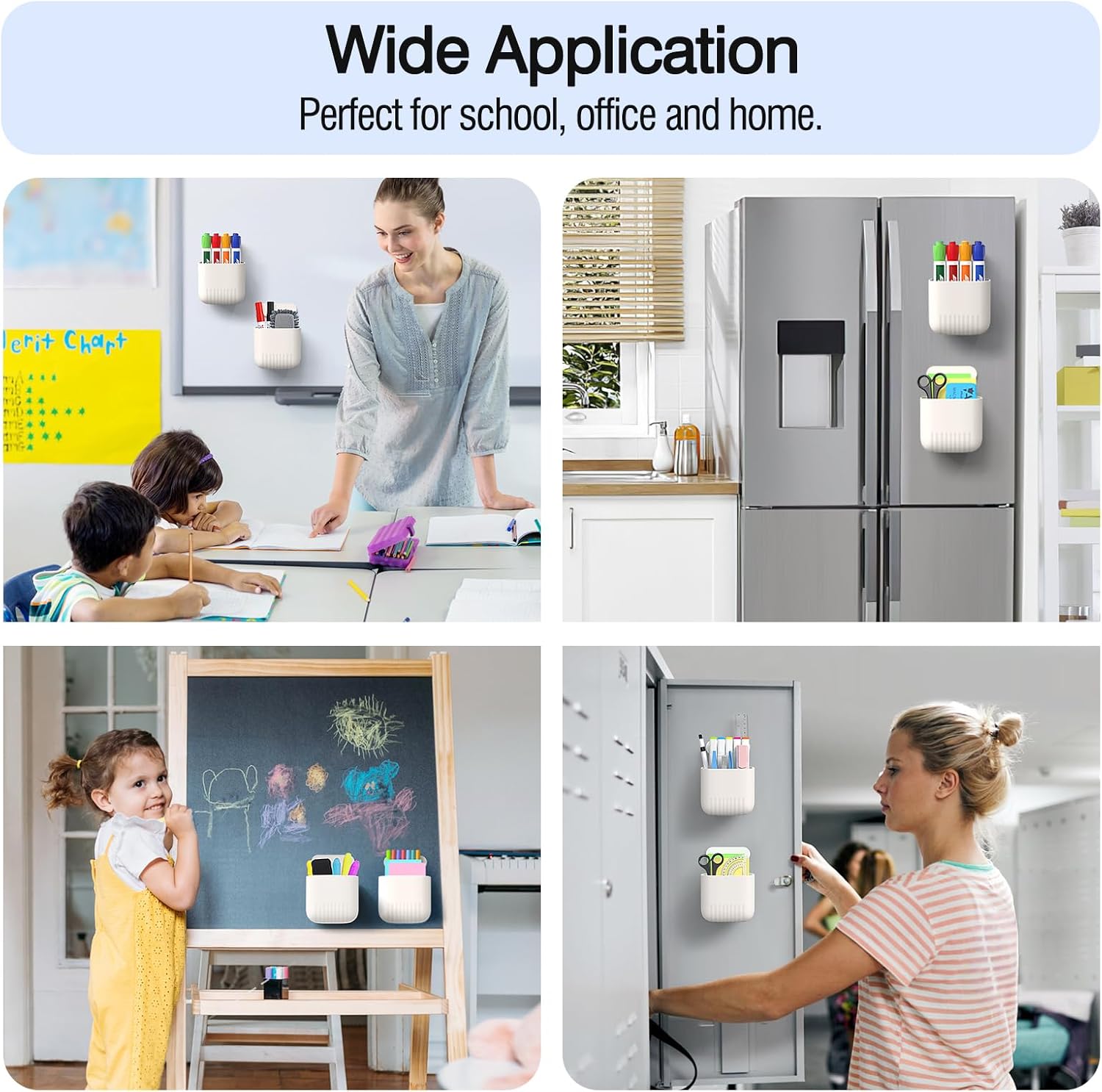 - ăMagnetic Storage HolderăMeasuring 6.3x3.7x3.7in/ 16x9.5x9.5cm, the dry erase marker holder has a appropriate size and can organize various office or school supplies, such as markers, pencils, pens, whiteboard erasers, sticky notes, etc. Keep office essentials organized and say goodbye to messy storage!