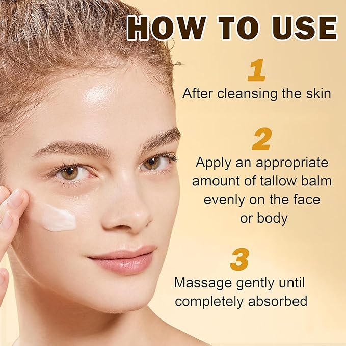 - HOW TO USE: After cleansing the skin, take an appropriate amount of beef tallow moisturizer and apply it evenly on the body or face, and then gently massage until it is completely absorbed