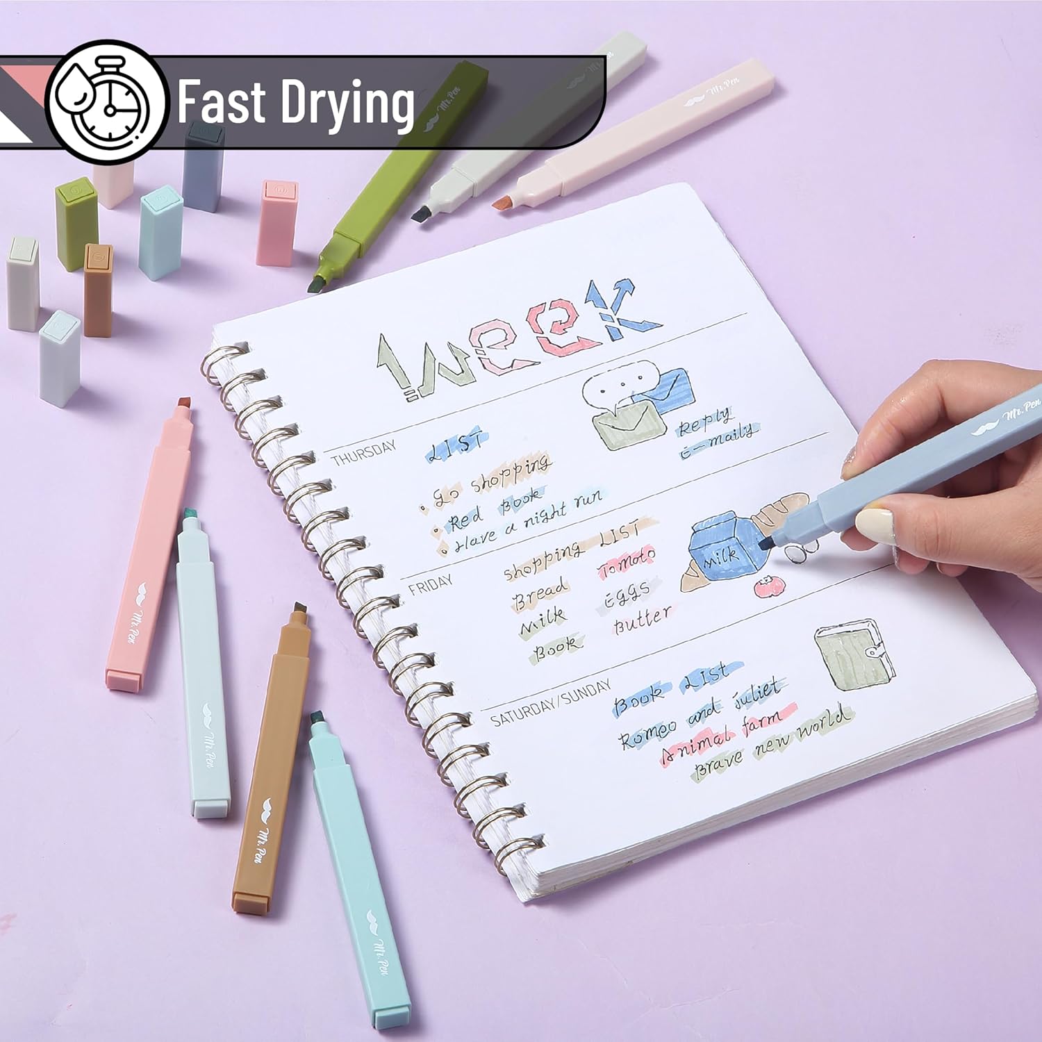 - Mr. Pen aesthetic highlighters come in a set of 8 soothing, natural earth tones, perfect for adding subtle elegance to your notes and projects.