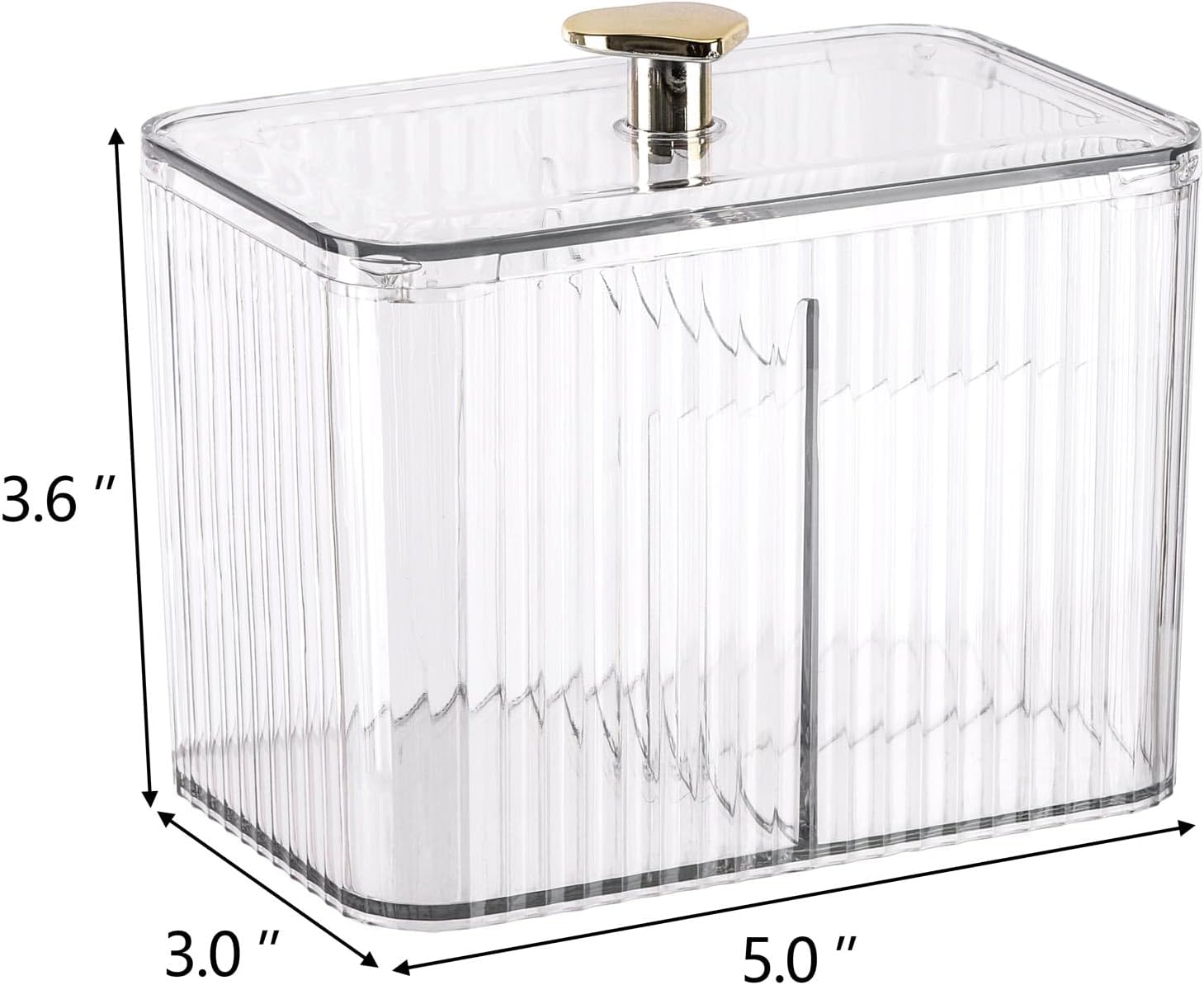 Tbestmax Qtip Holder Dispenser 3-Section Clear Bathroom Organizer Jar 3 Grids Cotton Swab/Pad/Ball Holder Container Cosmetics Storage for Vanity(2 Pack)