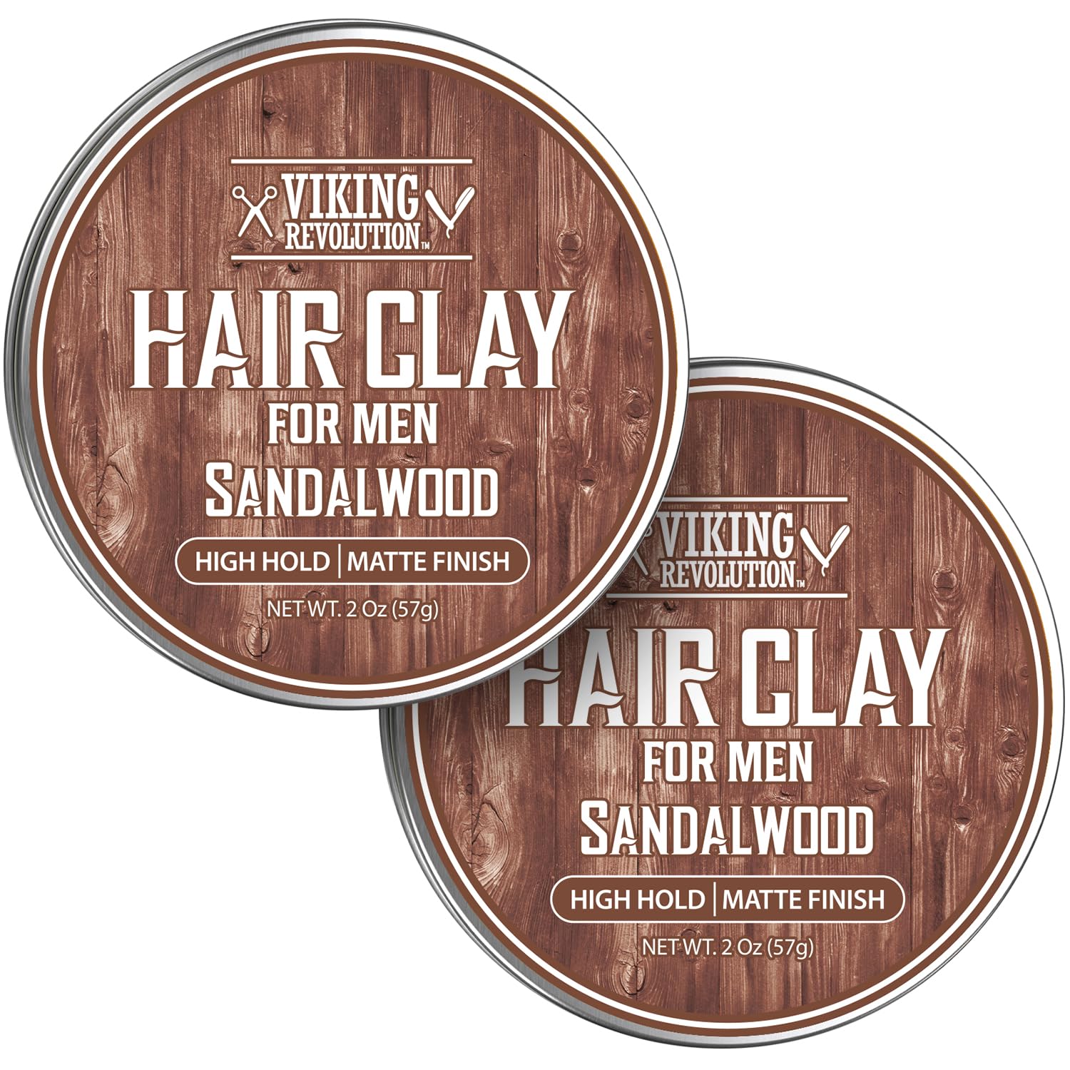 Viking Revolution Sandalwood Hair Clay – Strong Hold & Matte Finish, Texturizing Hair Clay for Men – Beeswax, Jojoba Wax & Vitamin E – Effortless Styling with Sandalwood Scent (2 pack, 2oz each)