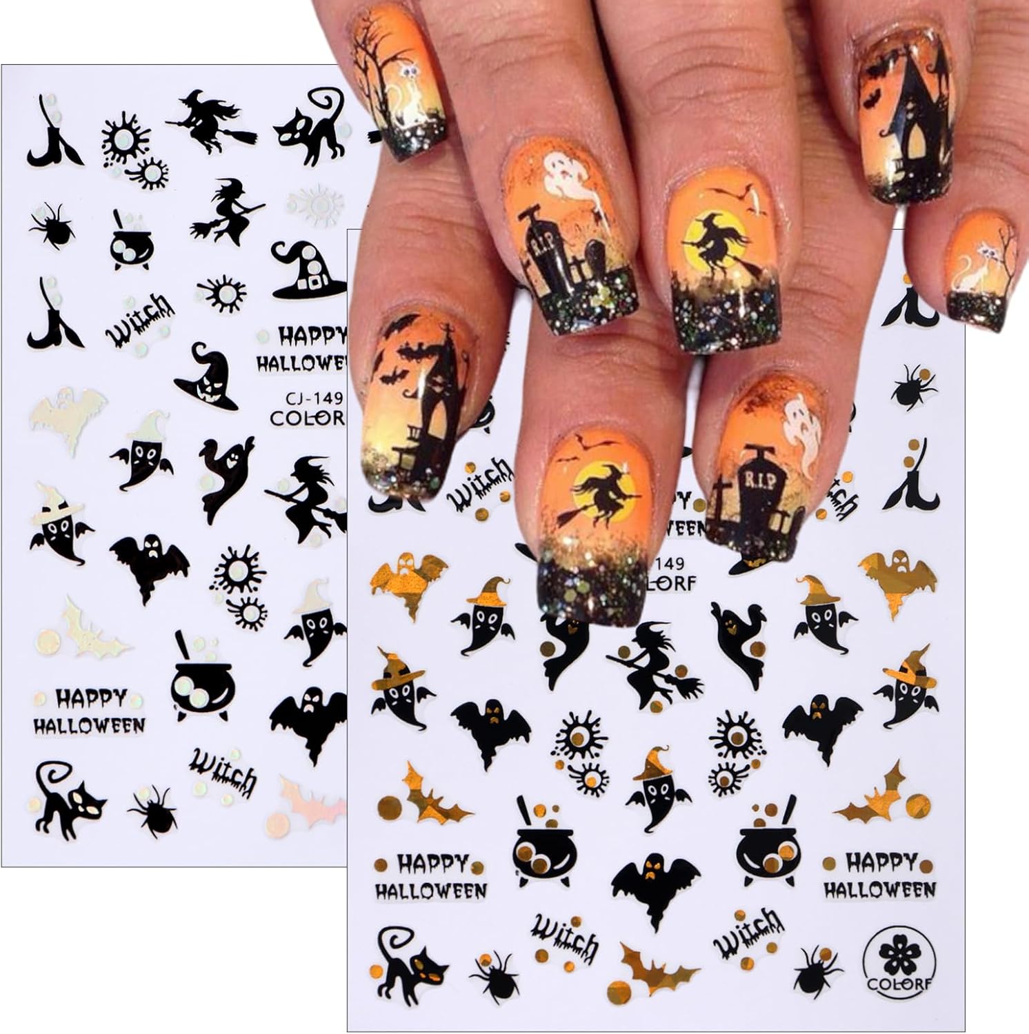 - Funny Pumpkin Self-Adhesive Design: 3D cute nail decals for nail art design is simple and quick to use, nail stickers work great on bare nails, they will stay on for a long time and will not peel off your nails, enjoy the feeling of nail art