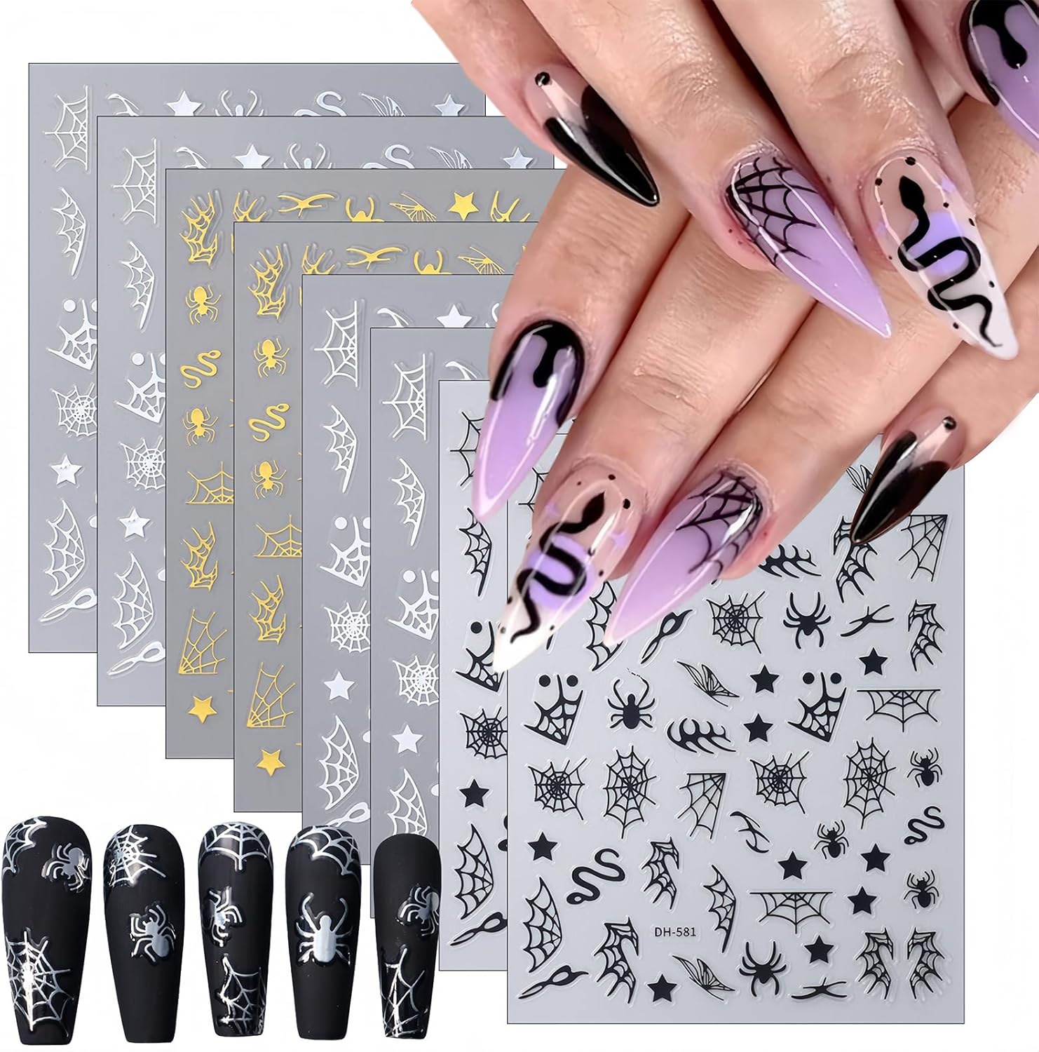- Halloween Nail Stickers- You will get 8 sheets spider nail art stickers for acrylic nails supply, many pattern for you to choose, spider web nail designs, and satisfy your rich imagination of nail DIY