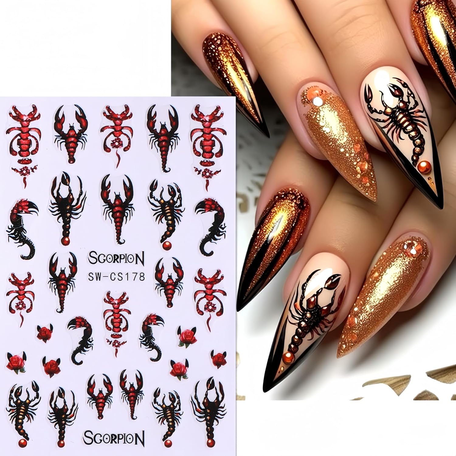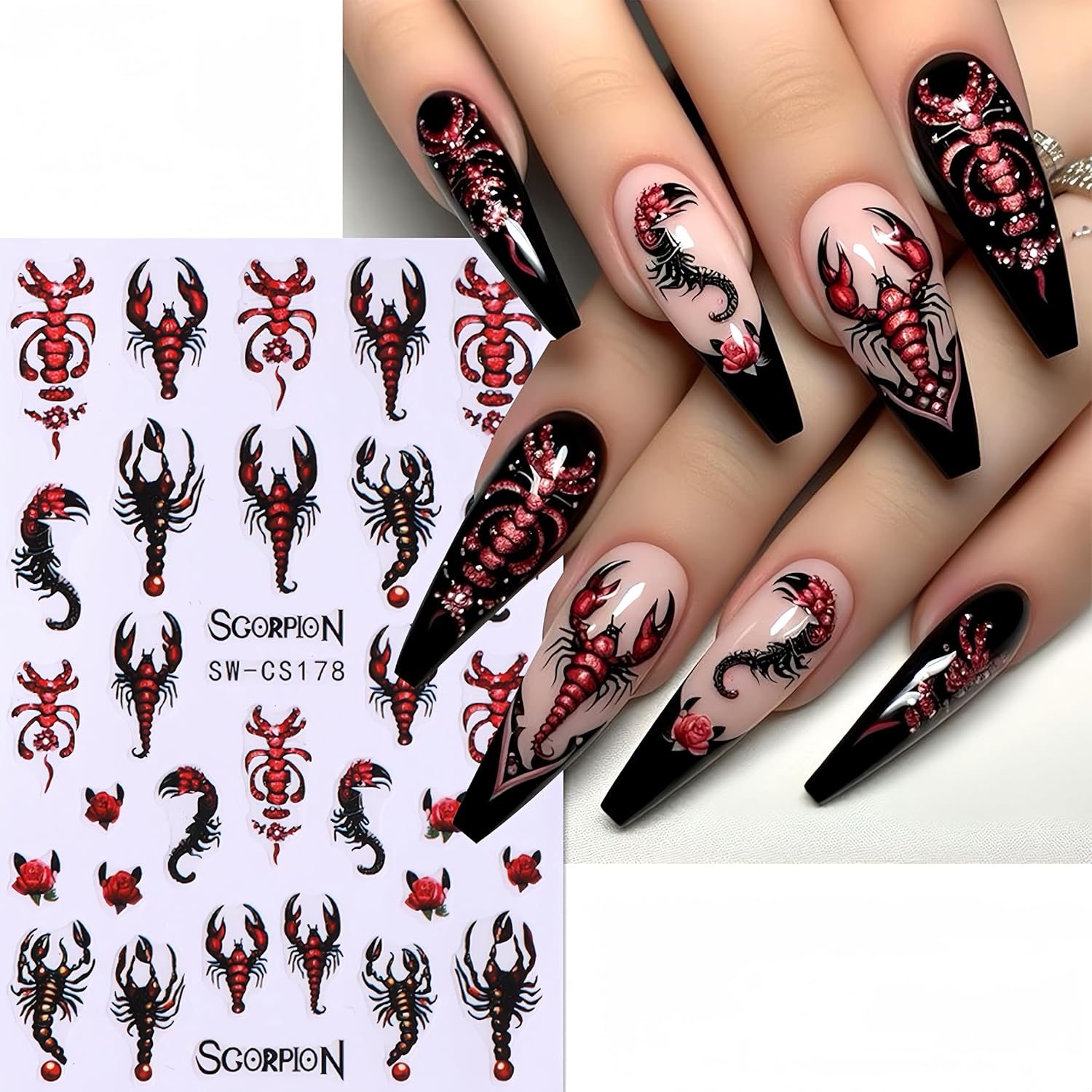 - Easy to Use: Scorpion nail stickers decal are self-adhesive, ompleting fashion-cool nail art design in just a few seconds. If you want to keep it for a long time, you need to apply nail polish on the surface for reinforcement.