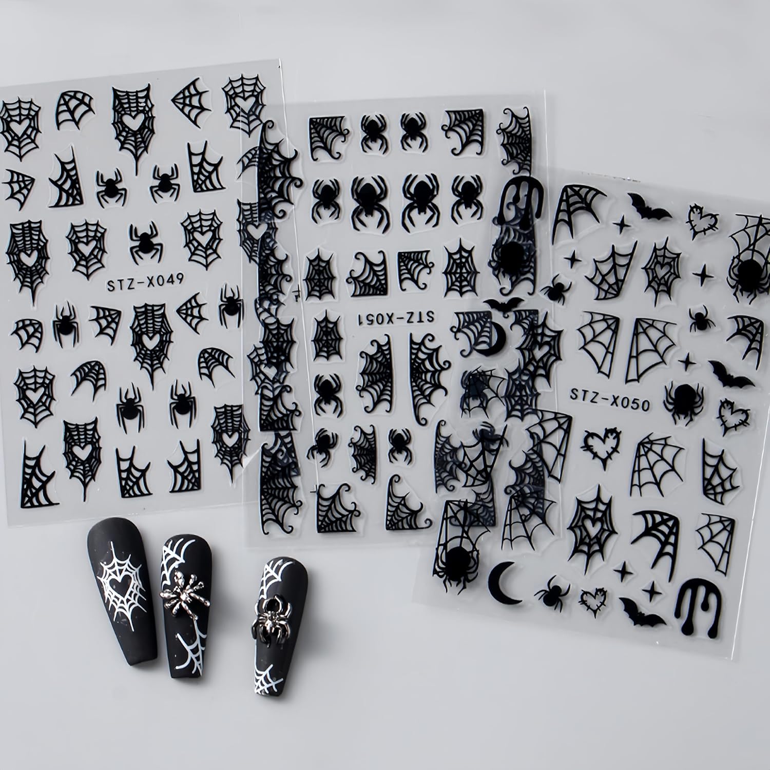 - Halloween Nail Stickers- You will get 8 sheets spider web nail art stickers for acrylic nails supply, many pattern for you to choose, black bat nail designs, and satisfy your rich imagination of nail DIY.