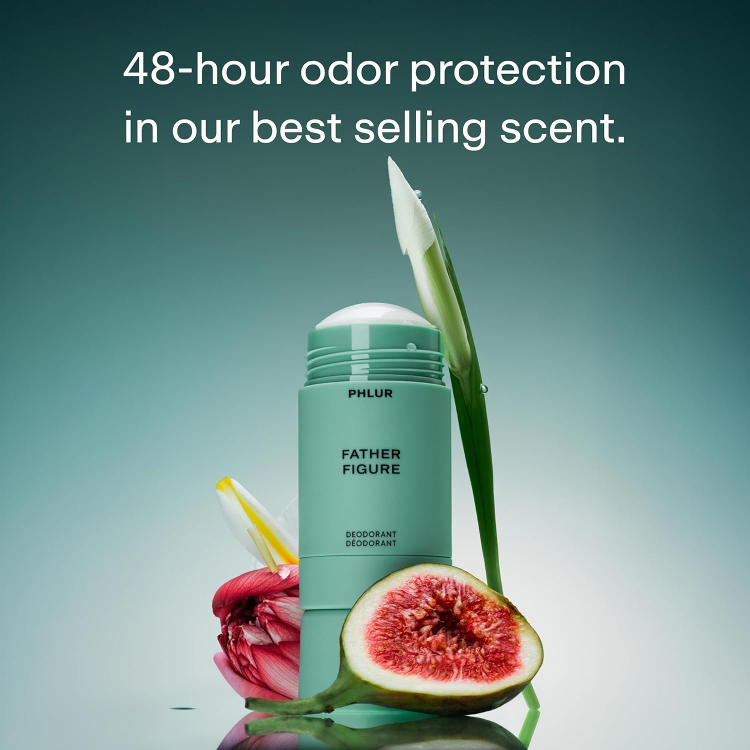PHLUR Father Figure Natural Deodorant - 48 Hour Odor Protection Baking Soda Free & Aluminum Free Deodorant - Salicylic Acid, Arrowroot Powder & Tamanu Oil - No Residue or Irritation