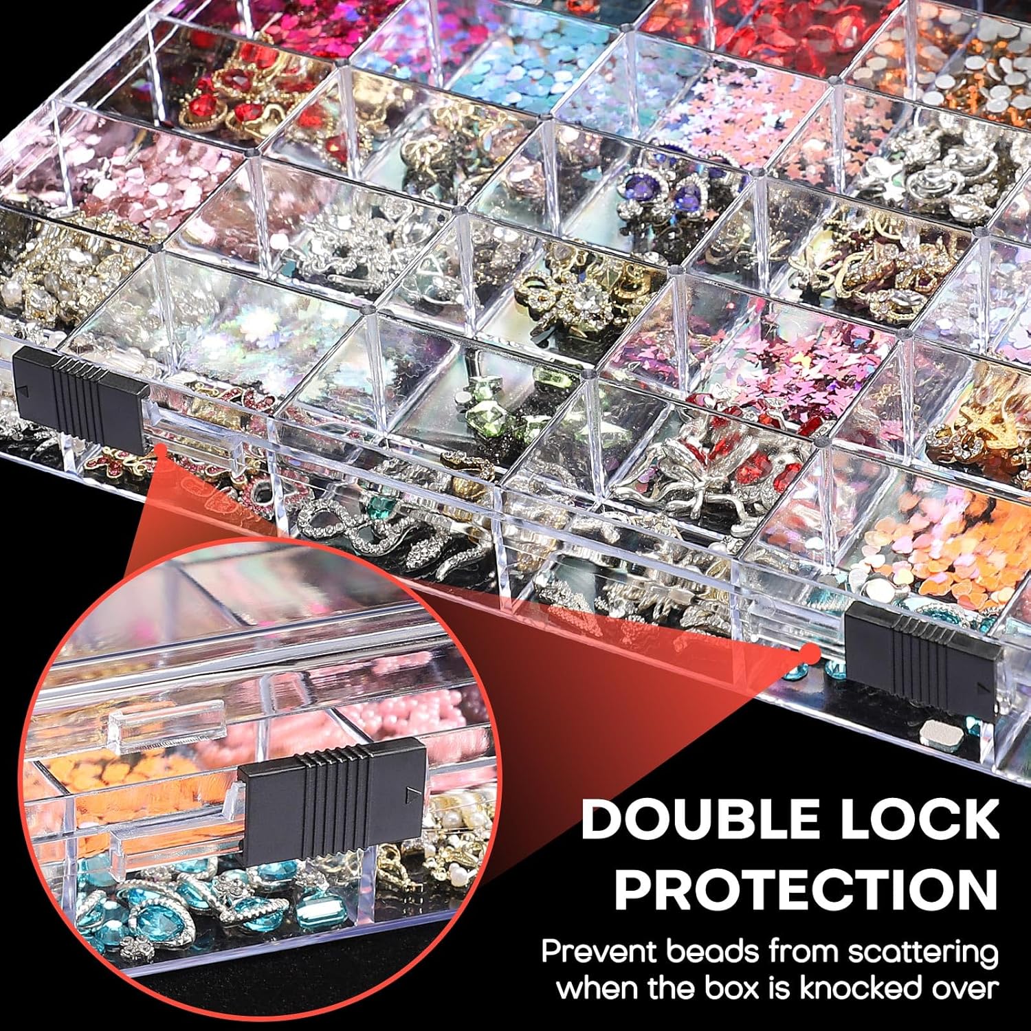 - 【2 Pack & 36 Grids Large Capacity & Double Buckle】-- You will receive 2 Pack clear organizer box, which measures 9.72 x 7.08 x 1.18 inches / 25 x 18 x 3 cm. Designed with 36 individual compartments for storing small parts or supplies, keep them away from mess up. Unique transparent appearance creates attractive display, which every female will fall in love with at first glance
