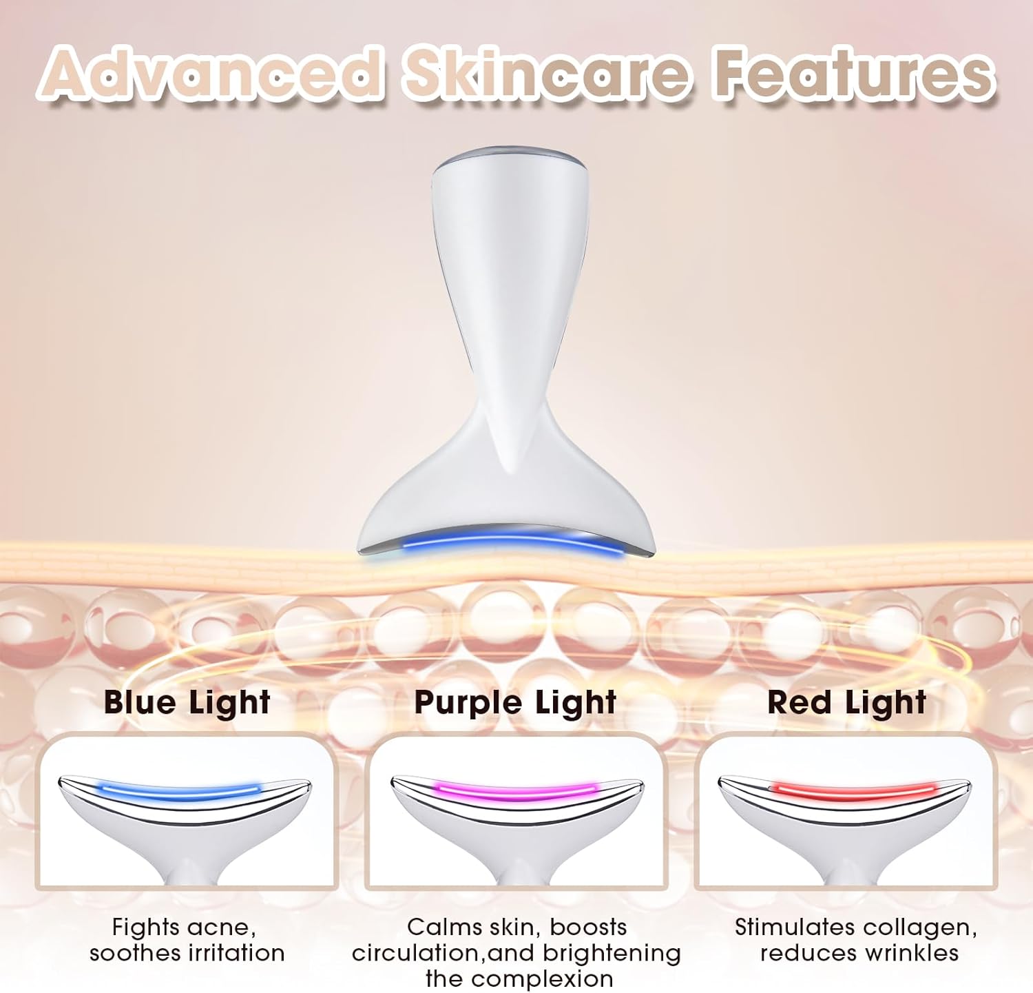 Face & Neck Massager | White LED Red-Light-Therapy-for-Face and Neck, Red Light Therapy Wand, 3 Color Led Massager for Skin Care