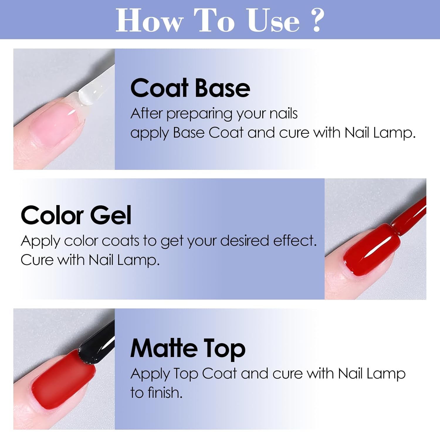 - Service: Use the same brand of Nail Gel Polish will own a better effect. Skin Test before using is necessary. Please contact us directly if you have any problem while using. We always keep active to help you solve problems.