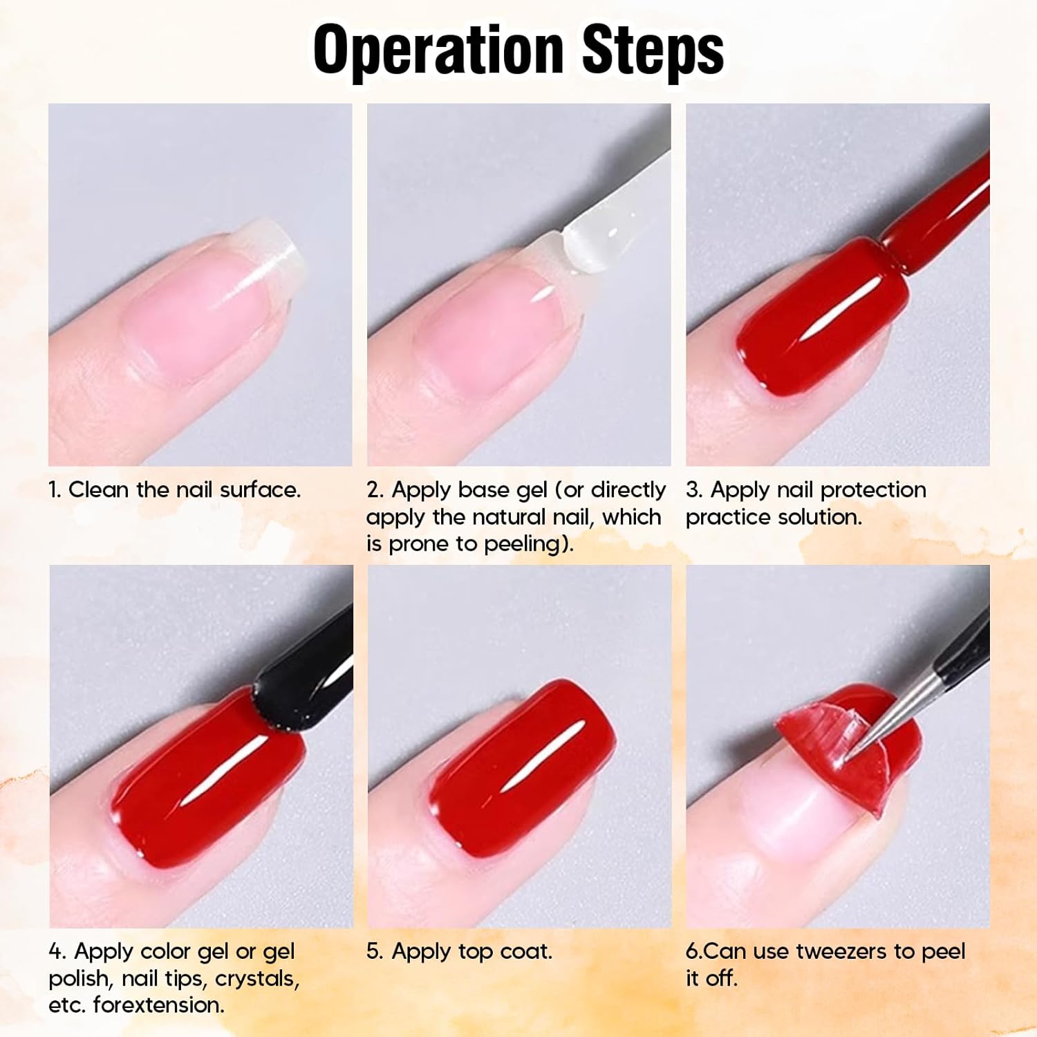 - Healthy Manicure:Our clear peelable gel base is made from natural plants resin. No harsh ingredients or adhesives that lead to damaged nails, paraben & cruelty-free, anti-chipping, low odor and skin-friendly.