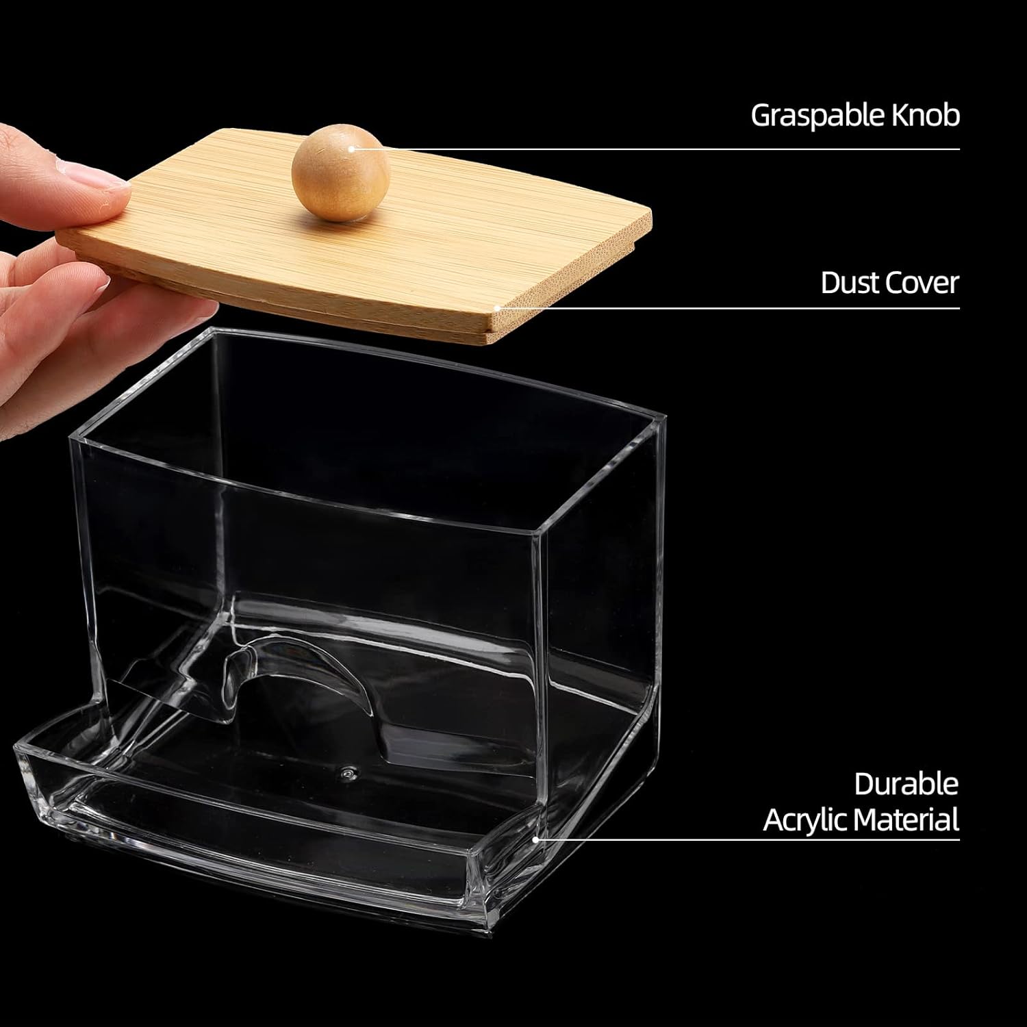 Tbestmax 2 Pack 10oz Qtip Holder Dispenser with Bamboo Lids, Big Clear Bathroom Organizer Accessories Decor for Storage-Qtips Cotton Ball Holder Apothecary Jars, Cotton Swabs, Floss Container