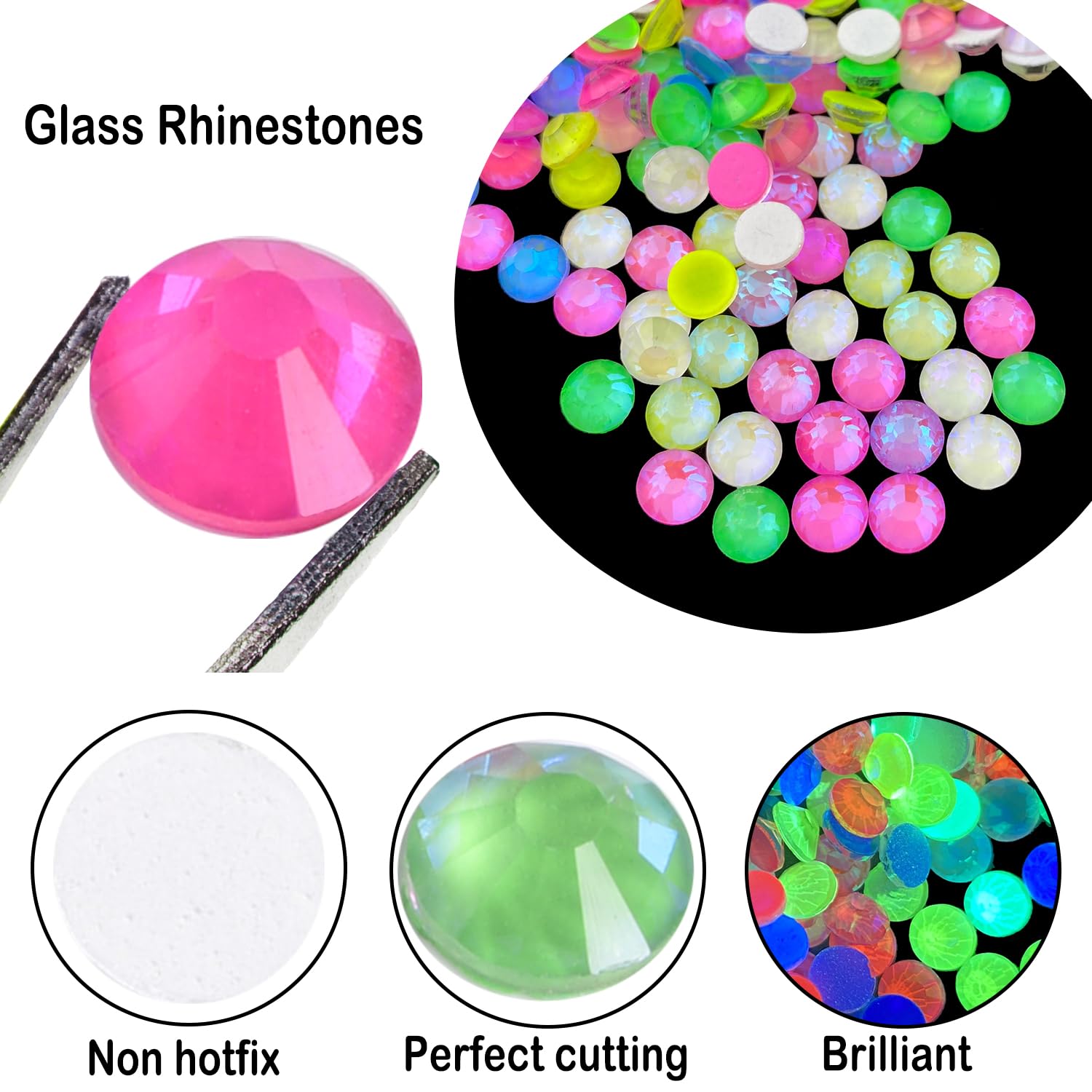 Flatback Glass Rhinestones,Bedazzler Gems 1440pcs Non Hotfix Crystal Rhinestones for Nail Charms Crafts Clothes Tumblers,Mixed AB Neon,SS16