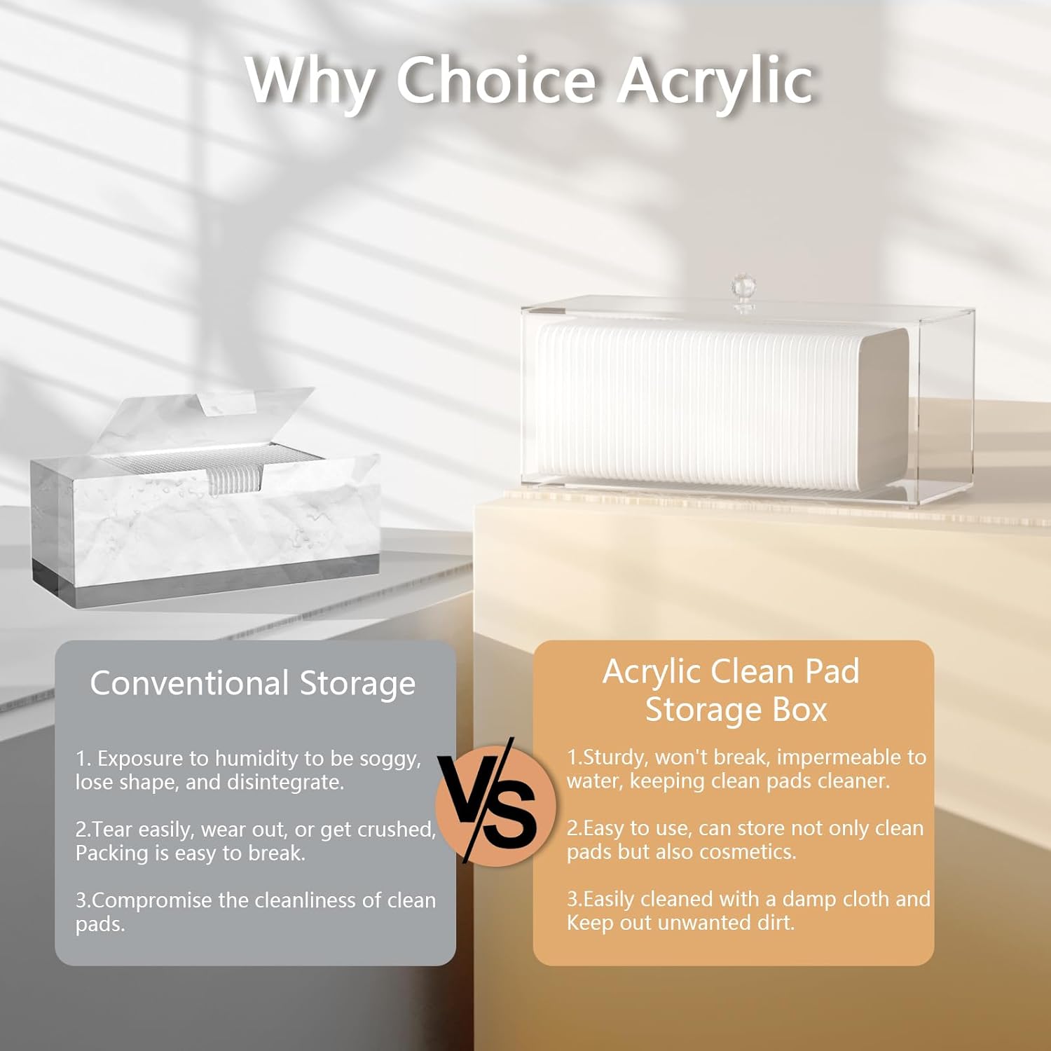 - 【Great for Vanity】:This acrylic clean pad dispenser enhances any vanity, keeping accessories organized and within reach. The elegant design offers easy access and storage, making it a stylish addition to your setup.