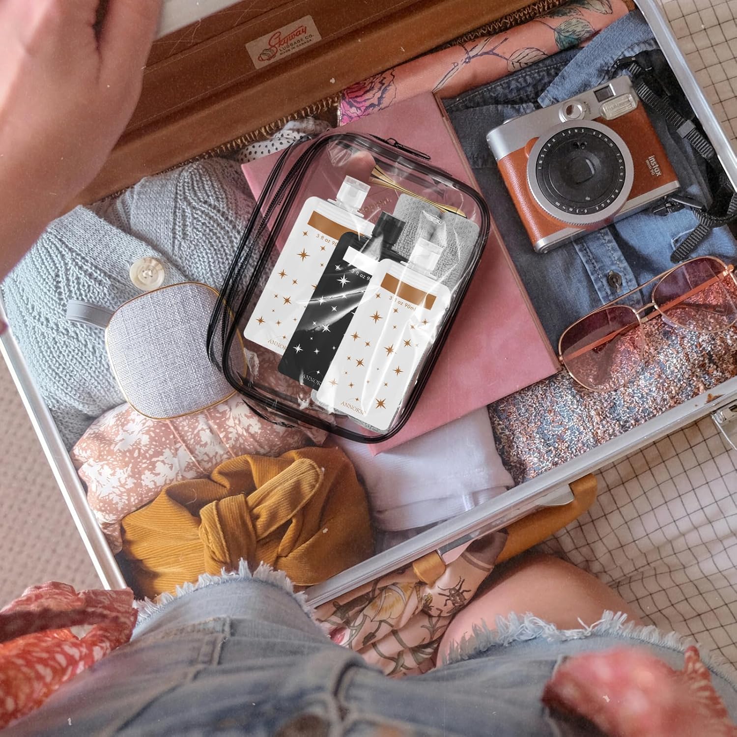 - Convenient Carrying:Compact and easy to carry, our travel pouches for toiletries are perfect for women who need to pack light. With a stylish star pattern and a convenient size, this travel container is a must-have for any trip.