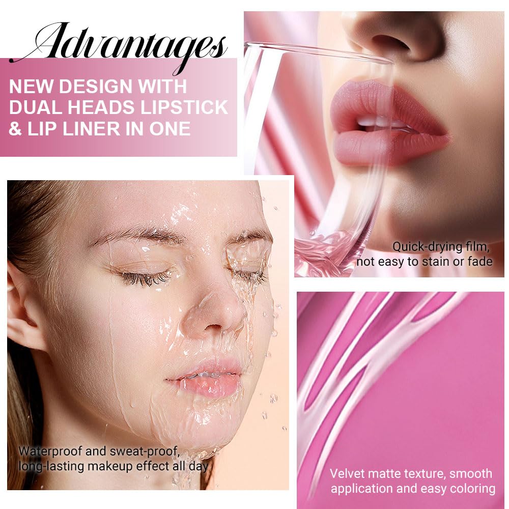 - 【2 IN 1 Lip Liner & Liquid Lipstick】The double ended design made you can use lipstick and lip liner on both ends. New design with dual heads lipstick & lip liner in one, for draw delicate lip line before applying lipstick. It combines lip line and liquid lipstick and makes double-end lipstick more perfect,meets the need of all occasions.