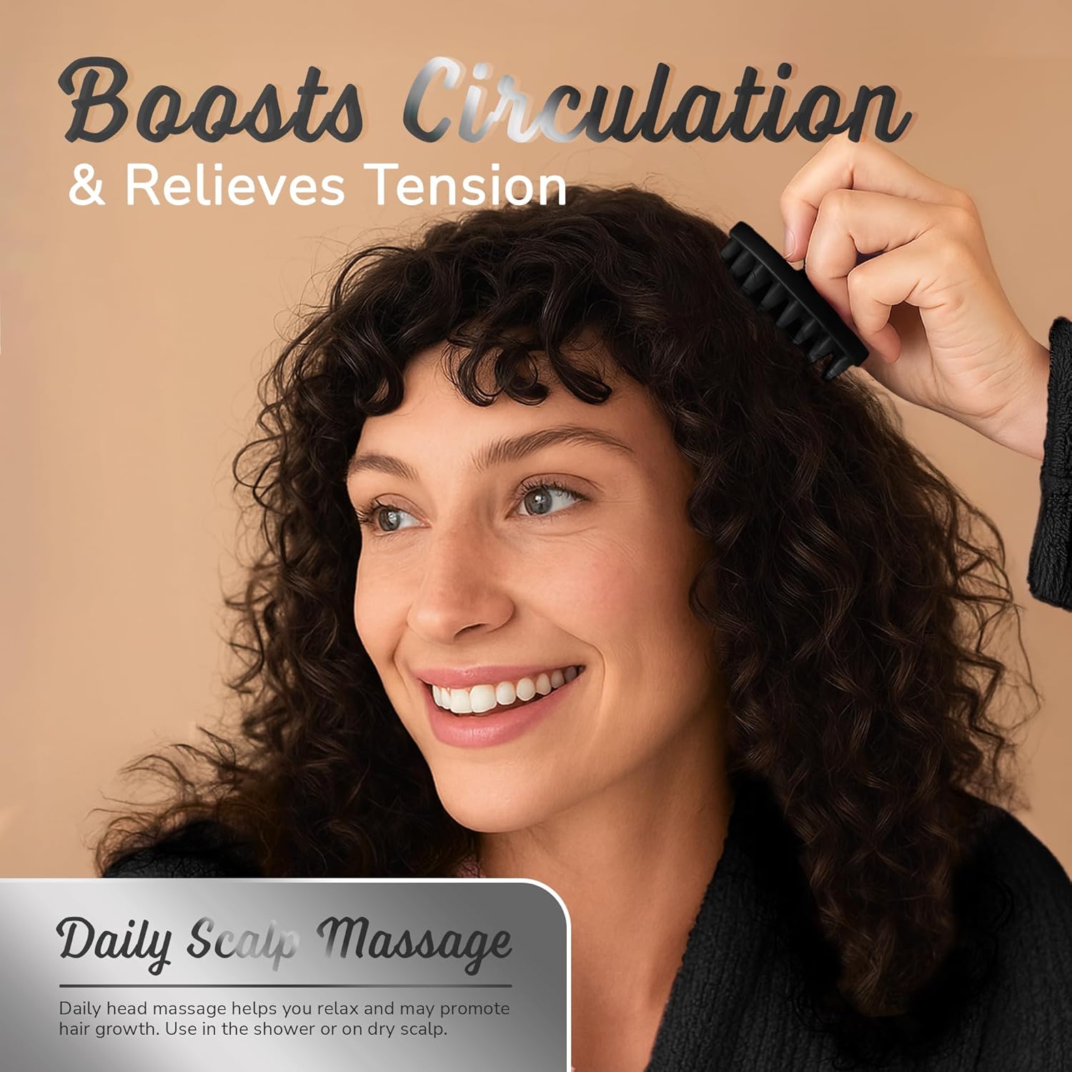 - Non-slip ergonomic handle for easy control — a balanced, palm-fitting grip stays steady in wet, soapy hands and works with either hand, giving you a relaxed, consistent scalp massage every time.