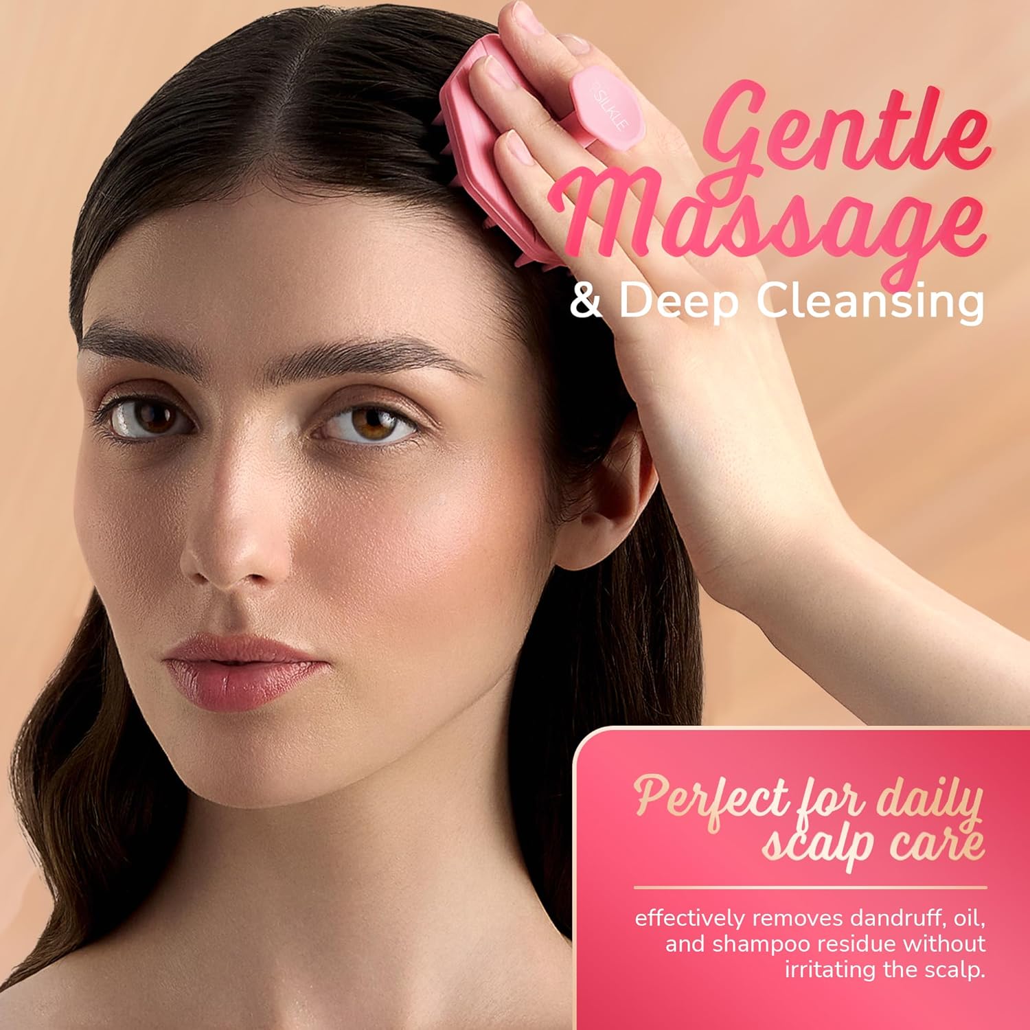 Silicone Scalp Scrubber - Massage Shampoo Brush, Soft Bristles for Hair Growth & Dandruff Removal - Ergonomic Design, Wet & Dry Use, Deep Cleansing Scalp Exfoliator for All Hair Types - Pink