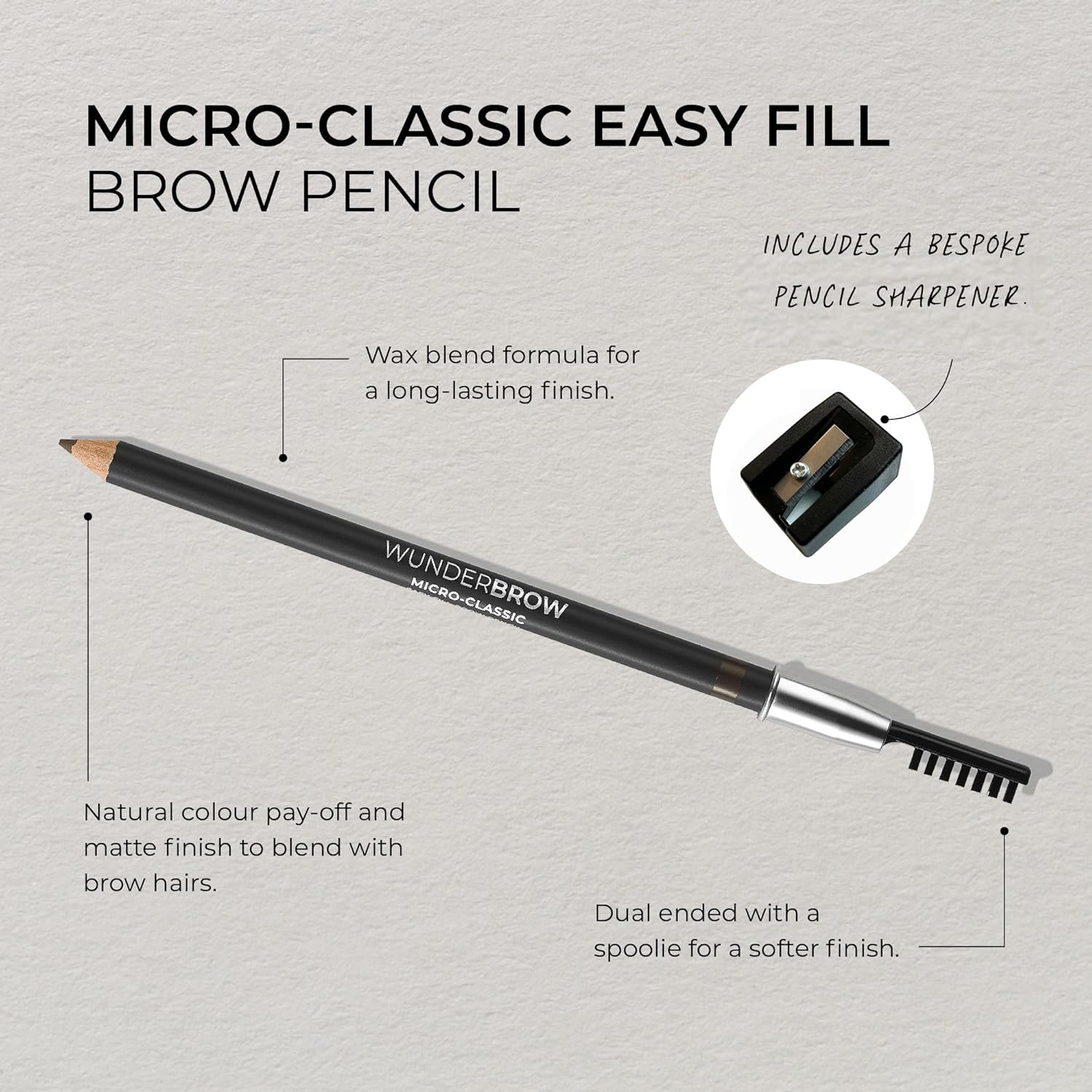 - Fuss-free wooden pencil to define brows with ease, Micro 2.5mm format for precision filling