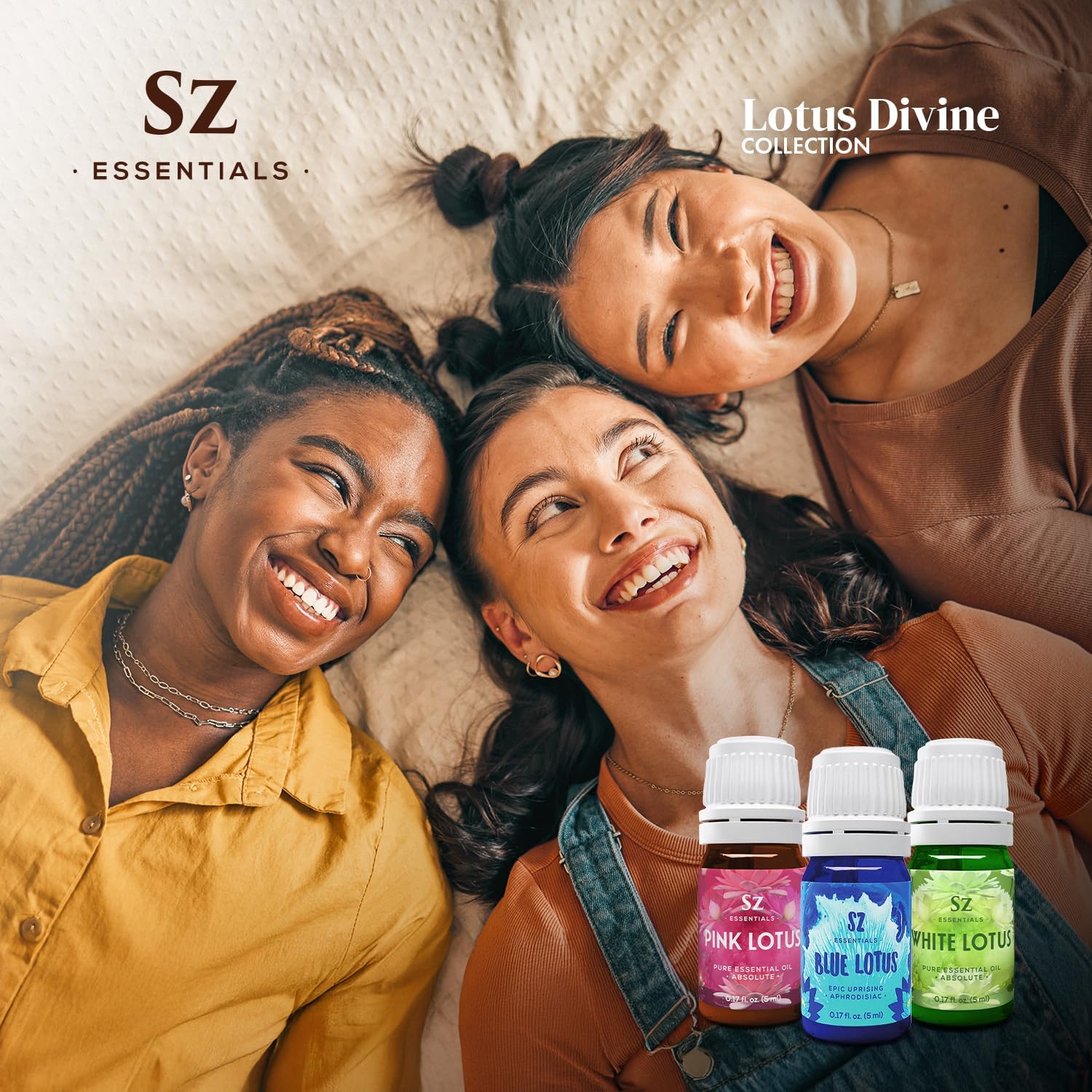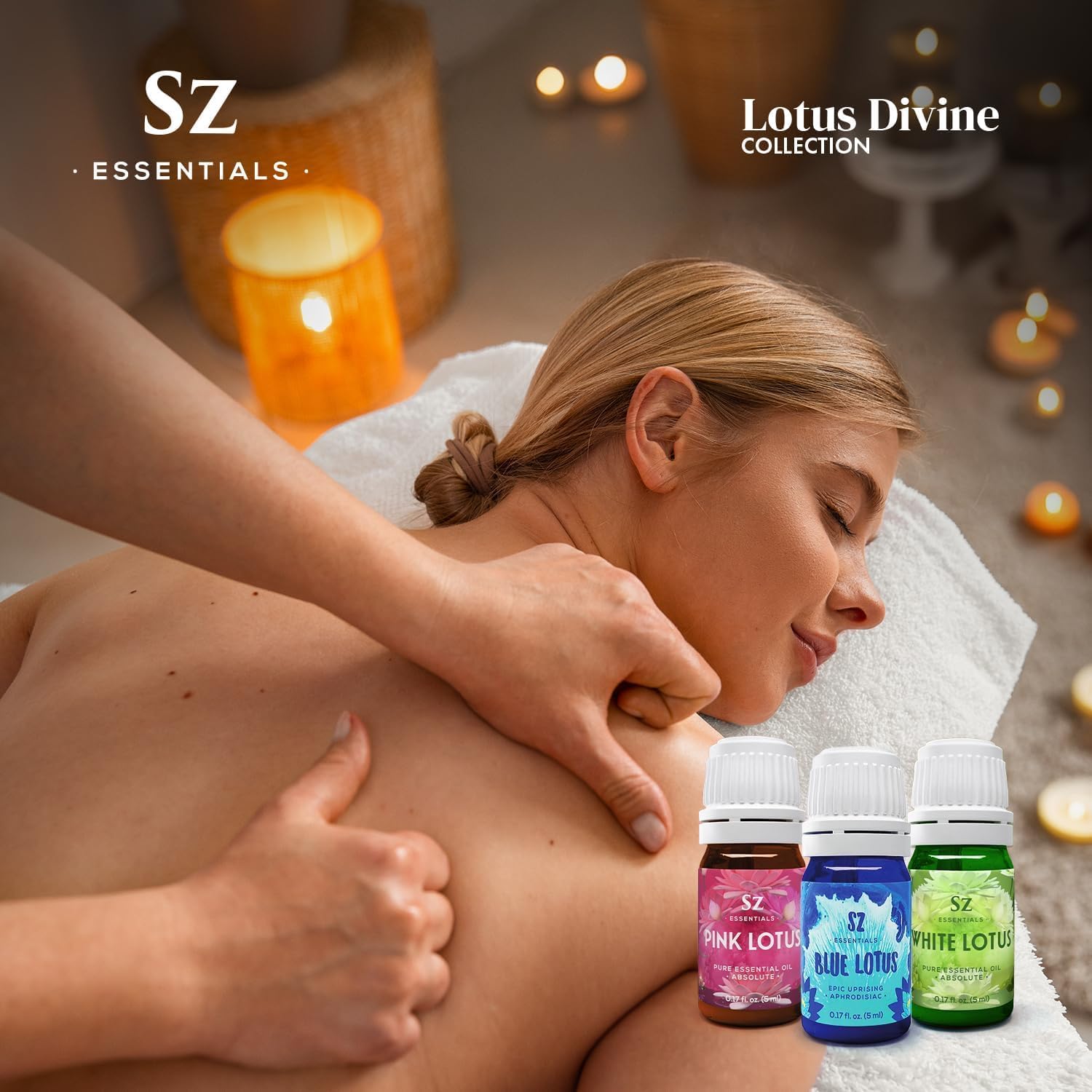 Divine Essential Oils Collection - Blue, Pink, White Lotus - Set of 3 Bottles (0.17 Fl Oz - 5ml Each) - 100% Pure, Natural & Undiluted - Therapeutic Grade & Vegan