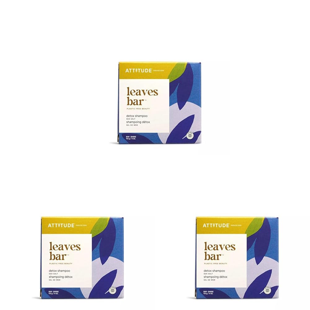 ATTITUDE Hair Shampoo Bar, EWG Verified, Plant and Mineral-Based Ingredients, Plastic-free Vegan and Cruelty-free Beauty Products, Detox, Sea Salt, 4 Oz (Pack of 3)