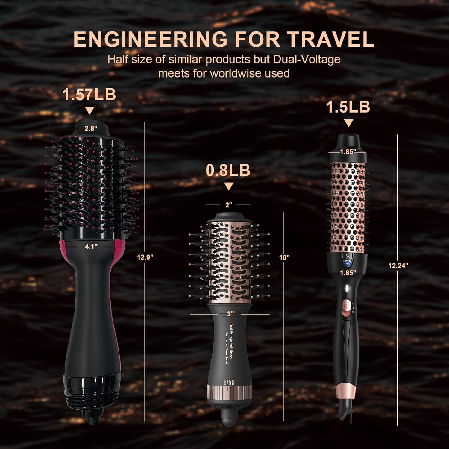 - ใ๐๐ก๐ฒ ๐๐ก๐จ๐จ๐ฌ๐ ๐๐ฌ-๐๐จ๐ฎ๐ซ ๐๐ข๐ฌ๐ข๐จ๐ง, ๐๐ฎ๐ซ ๐๐๐ฌ๐๐ฌ๐ฌ๐ข๐จ๐งใThe ๐๐๐ ๐๐๐ซ๐ญ๐ข๐๐ข๐๐๐ญ๐๐ Dual Voltage Travel Blow Hair Dryer Brush is just ๐.๐๐ ๐ฅ๐๐ฌ. This versatile device boasts a patented ๐-๐๐ง๐๐ก ๐จ๐ฏ๐๐ฅ cylinder engineered with 30% more even heat distribution, delivering enhanced styling performance through optimized airflow dynamics. Besides, it features a ๐.๐ ๐๐ญ ๐ญ๐๐ง๐ ๐ฅ๐-๐๐ซ๐๐ ๐๐๐ยฐ swivel cord that prevents tangling for effortless styling, which goes beyond the usual hair dryer.