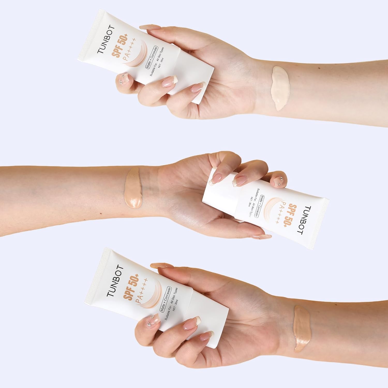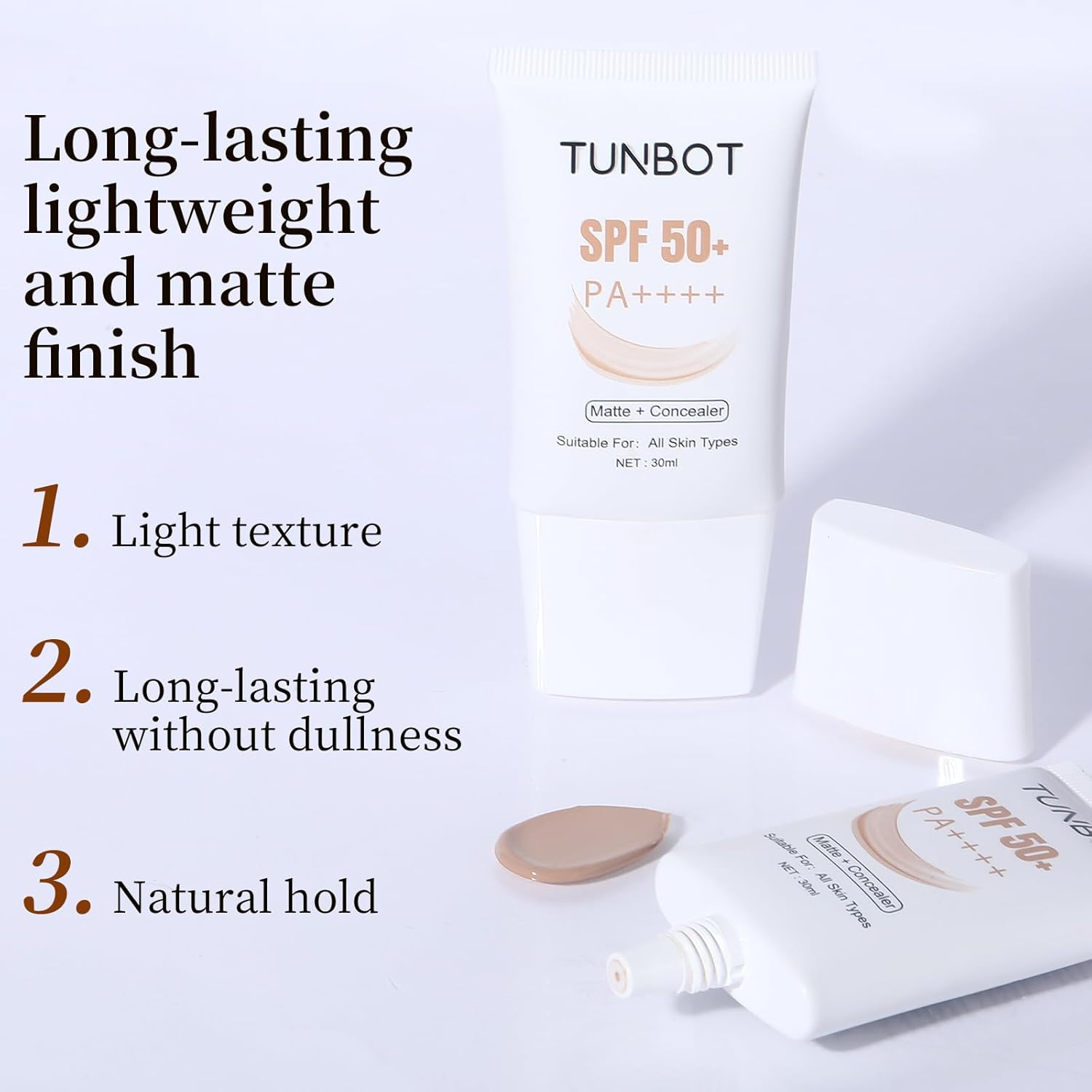 TUNBOT Long Lasting Concealer Foundation, SPF 50, Makeup to Cover Facial Imperfections, Unscented Foundation for All Skin Types (30ml)