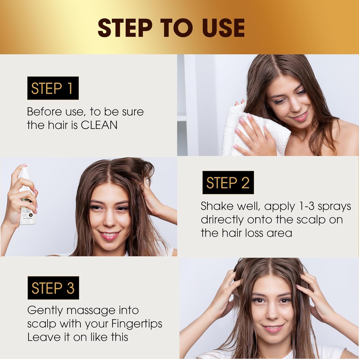 - Easy to Use: This hair care product is easy to incorporate into your daily routine, just apply to spray it on your scalp and massage it in. Frequently use, you’ll see a clear improvement on your hair thickness and strength. Our hair product is no parabens, no sulfates, no alcohol - just pure, effective ingredients for hair growth.