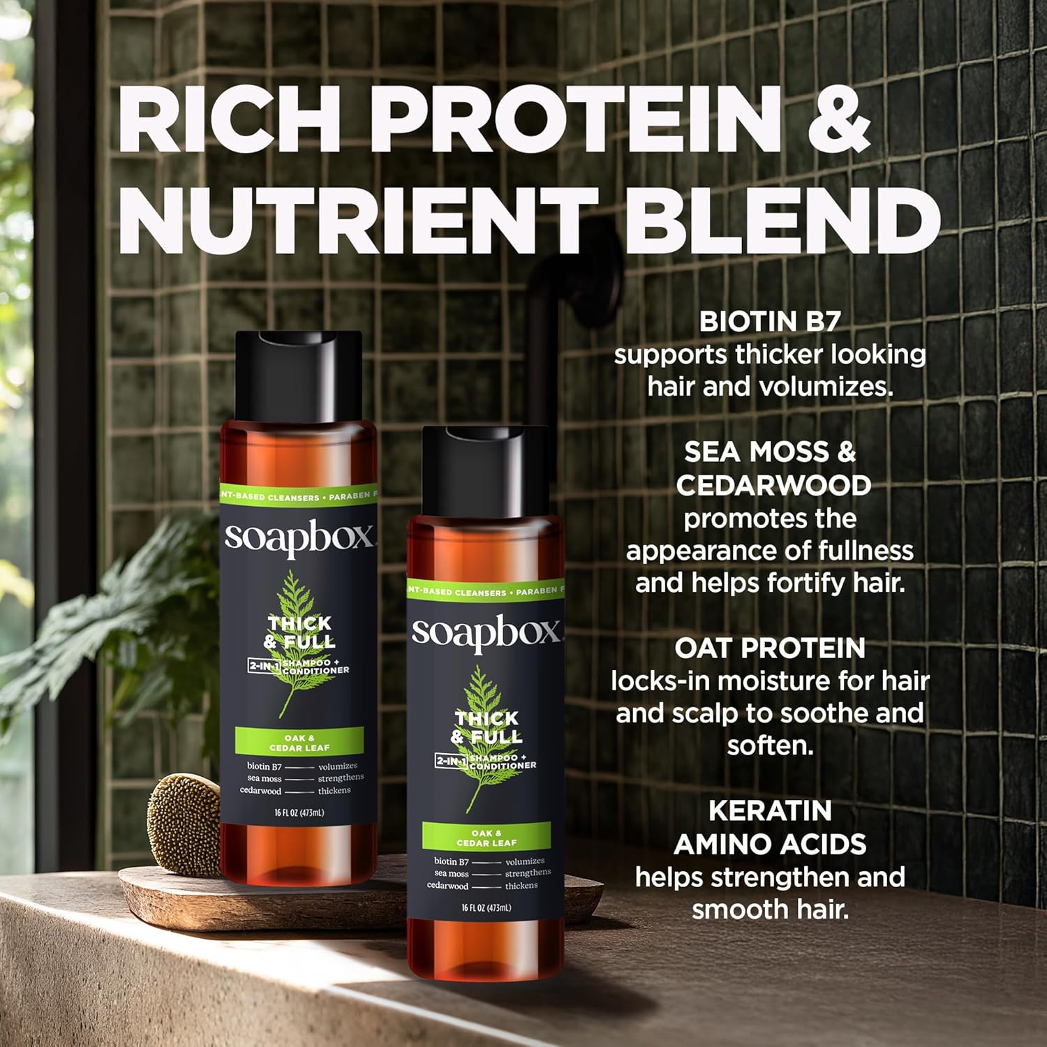 - THICK & FULL volumizes and nourishes your hair with biotin without stripping important natural oils. 2-in-1 shampoo and conditioner is a great time saving addition to your daily hair care routine.