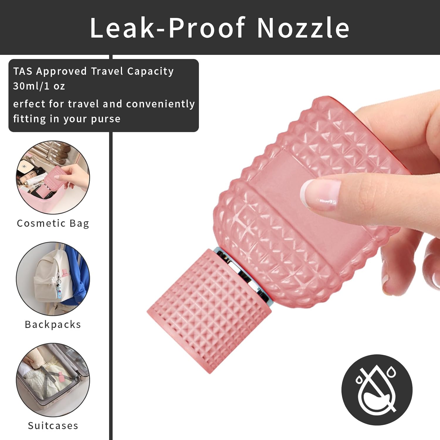 2 Pack 30ml Perfume Spray Bottles Empty, Refillable Glass Fine Mist Atomizer, Portable Travel Perfume Atomizers Fragrance Containers Sprayer for Cleaning, Essential Oils, Liquids (Pink)