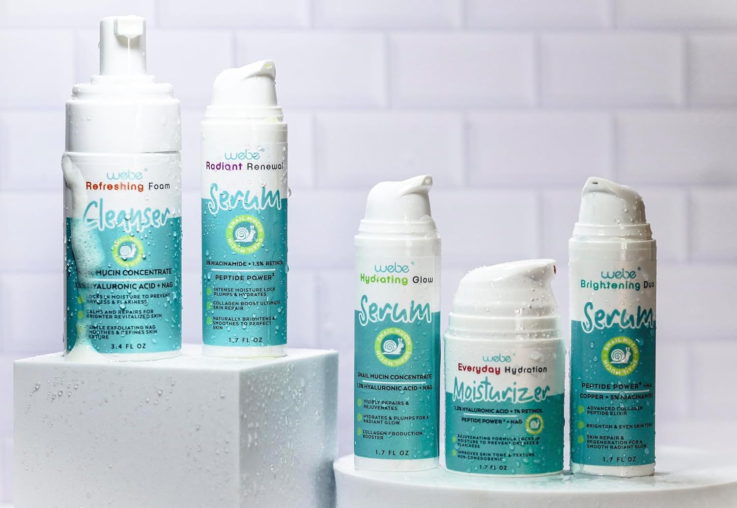 WEBE Naturals Snail Mucin 94% Hydrating Glow Serum | 1.3% Hyaluronic Acid & N-Acetyl Glucosamine | Collagen Boosting, Plumping, Anti Aging, Intense Moisturizing Serum for Radiant, Dewy Skin