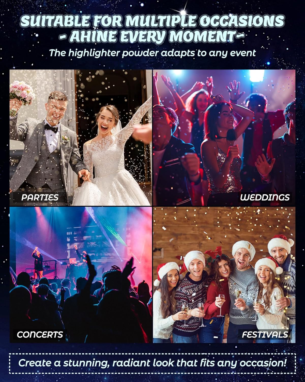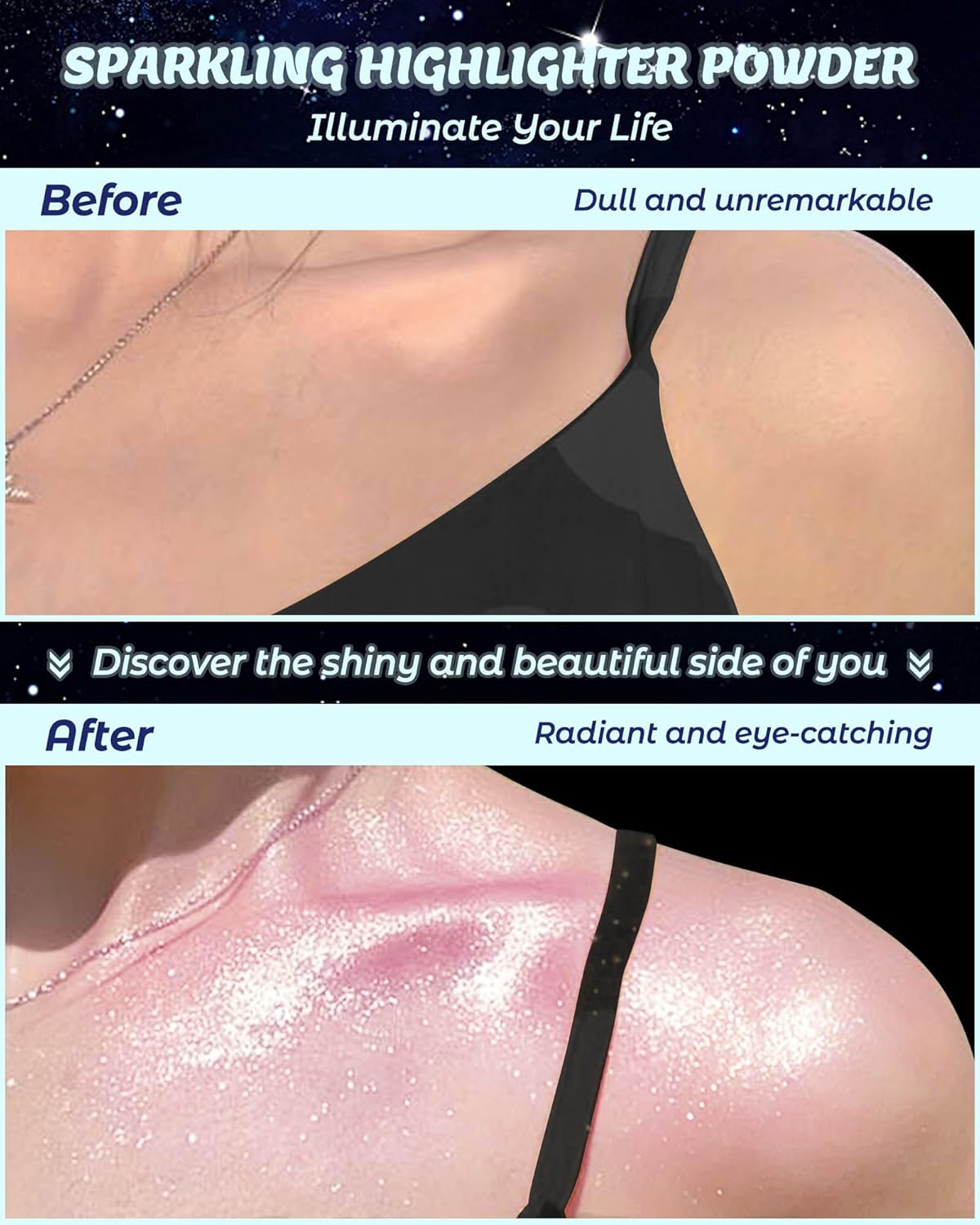 - Elevate Your Glow: Our Glitter Air Cushion Highlighter Powder adds stunning shimmer to your face, eyes, body, hair, and even clothing. Perfect for everyday wear and special occasions, it takes your makeup to the next level, ensuring you stand out in the crowd with a radiant, flawless glow