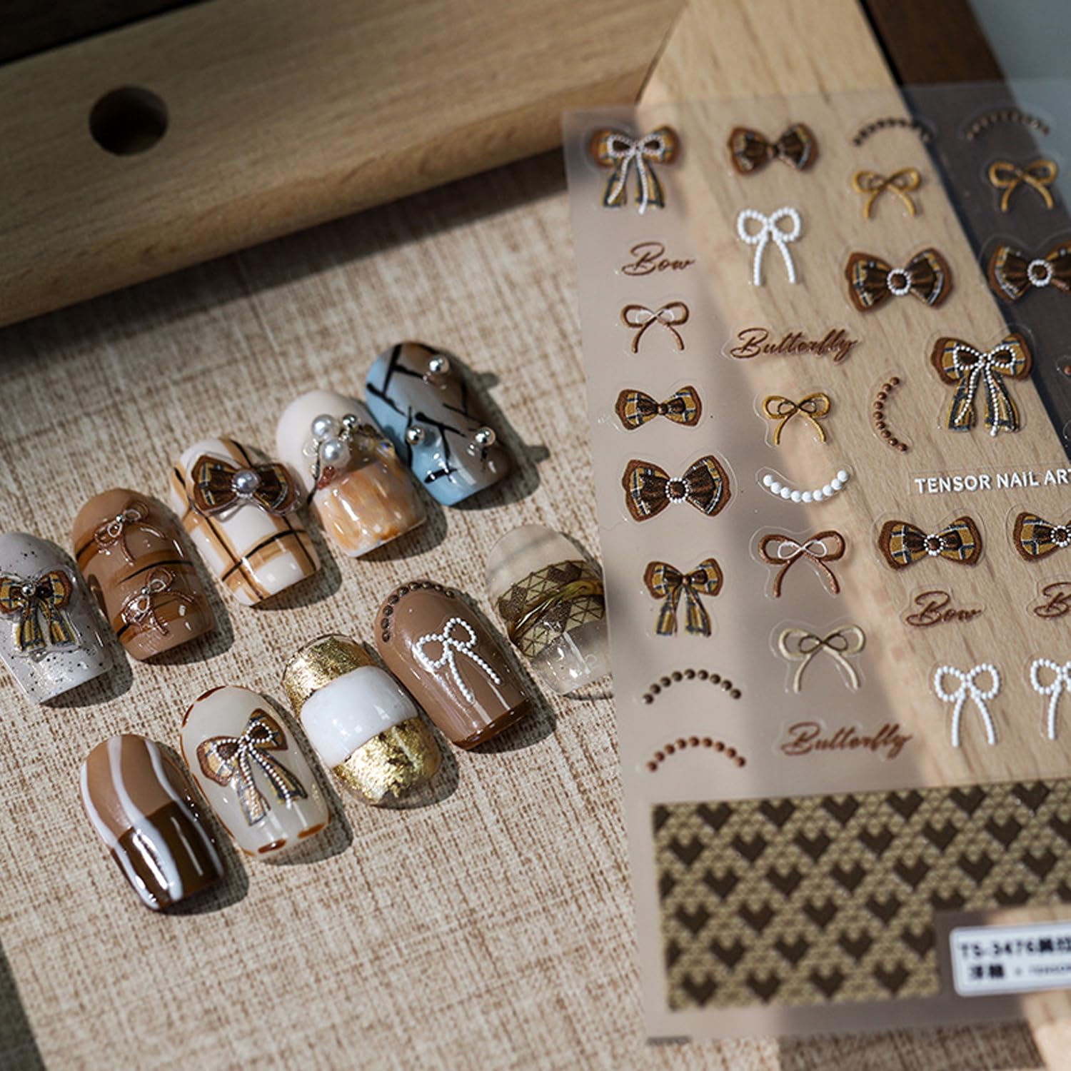 - Bow Nail Art Decals: 1 sheets of 5D embossing carving patterns nail stickers give you an advanced exquisite feeling. Brown bowknots elements patterns designs nail decals, suitable for decorations for your nails, adding a touch of magic to nail art design