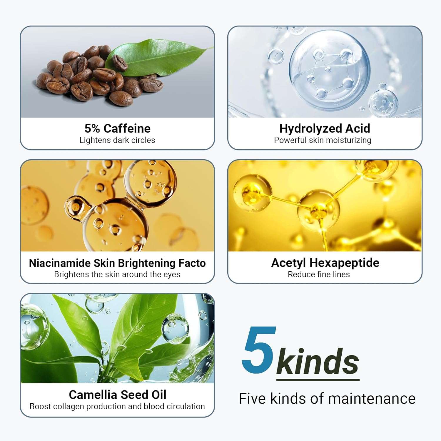 - Caffeine eye cream: Hicream Eye Serum with 5% Caffeine, reduce puffiness, dark circles, fine lines and wrinkles around the eyes, It deeply hydrates the delicate skin around your eyes, visibly smoothing and firming for a refreshed appearance.