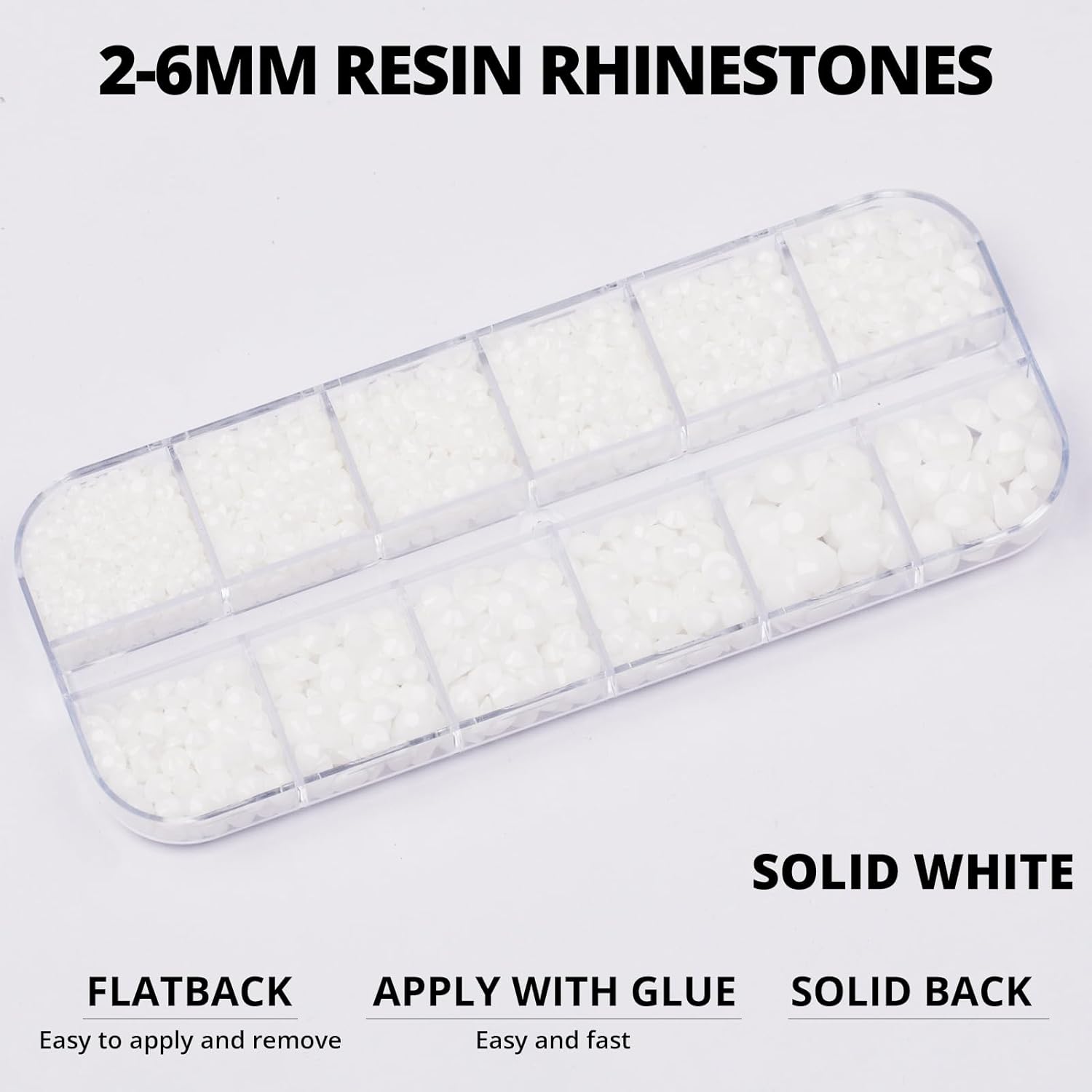 6000Pcs Solid White Rhinestones for Crafting Bedazzling with b7000 Glue, Bling Resin Flatback Crystals Diamonds for Crafts Clothing Tumblers Shoes Fabric Canvas, Flat Back Gems Mix 2-6mm
