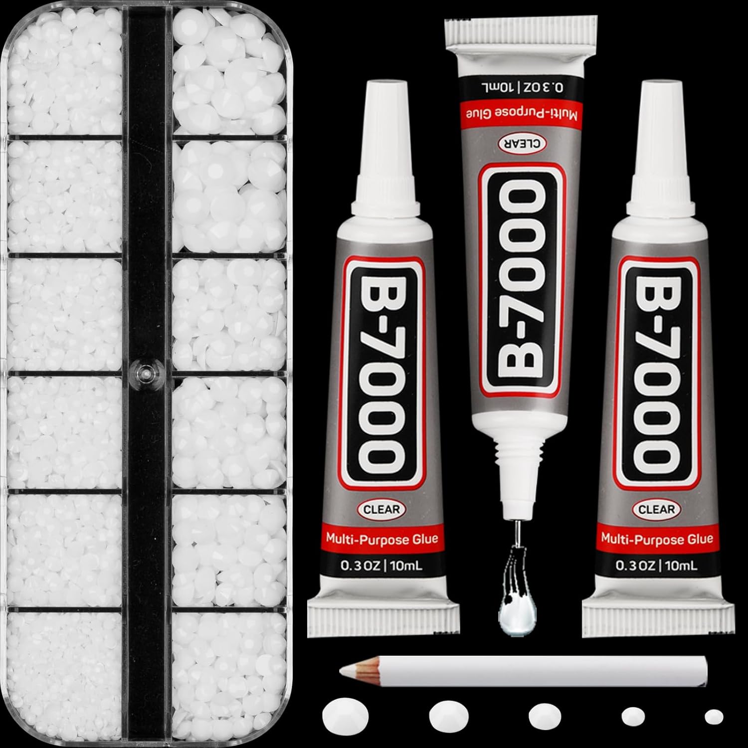 - B7000 Clear Glue for Gemstones -- B7000 glue has strong adhesion and dries clear, waterproof when dried, non-toxic and harmless to the skin. The glue has a precision needle for easy application, they can be applied precisely