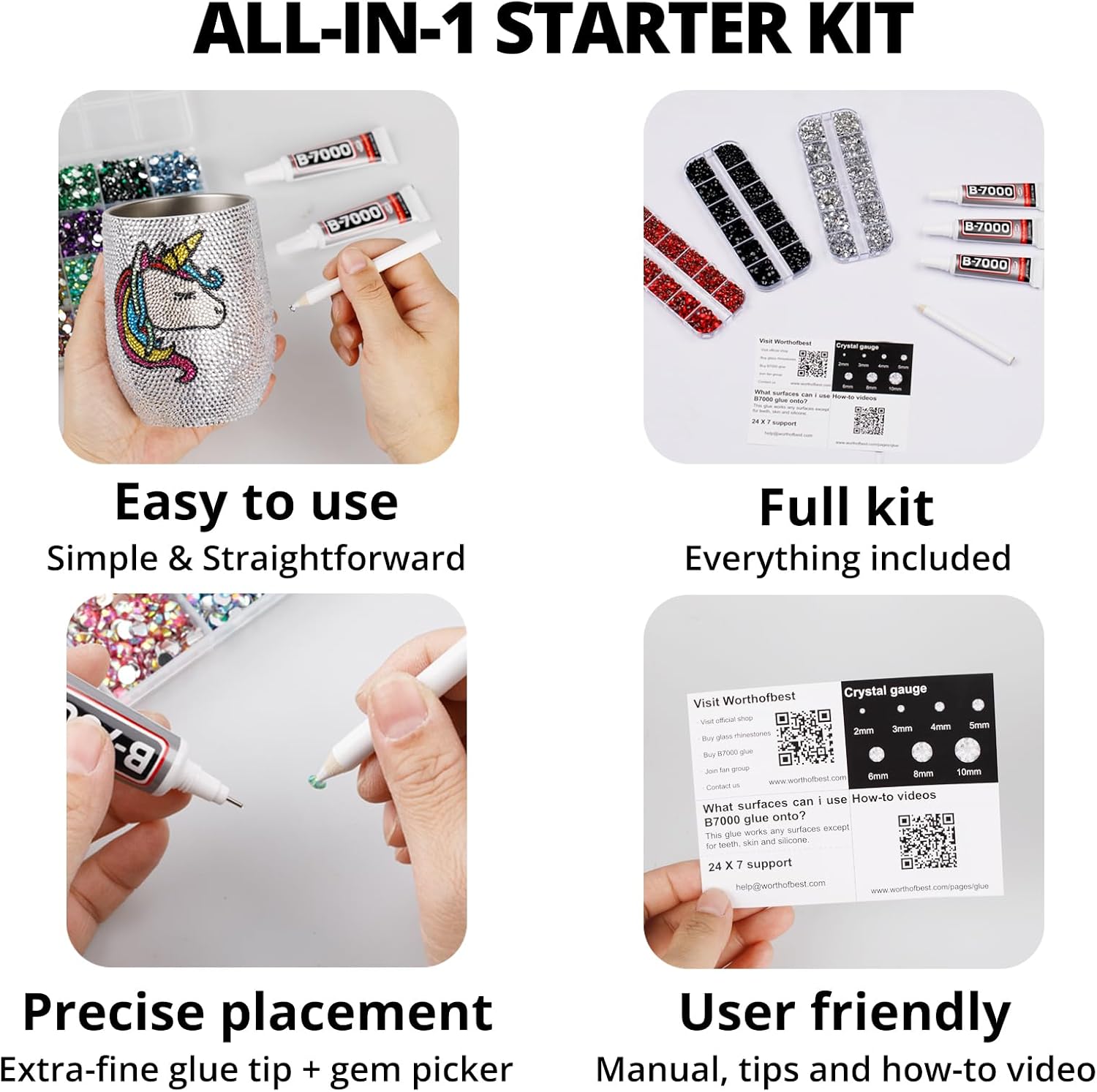- Easy to Use -- This kit is designed to be straightforward, and versatile for various crafting projects. The manual is user-friendly and beneficial for both novice and experienced crafters. The complete and durable tools are suitable for precisely applying rhinestones to create intricate designs, with no additional tools required. Rhinestones are easy to apply and remove. The sturdy container with 31 grids keeps all rhinestones organized by size and color, making them easy to store and access