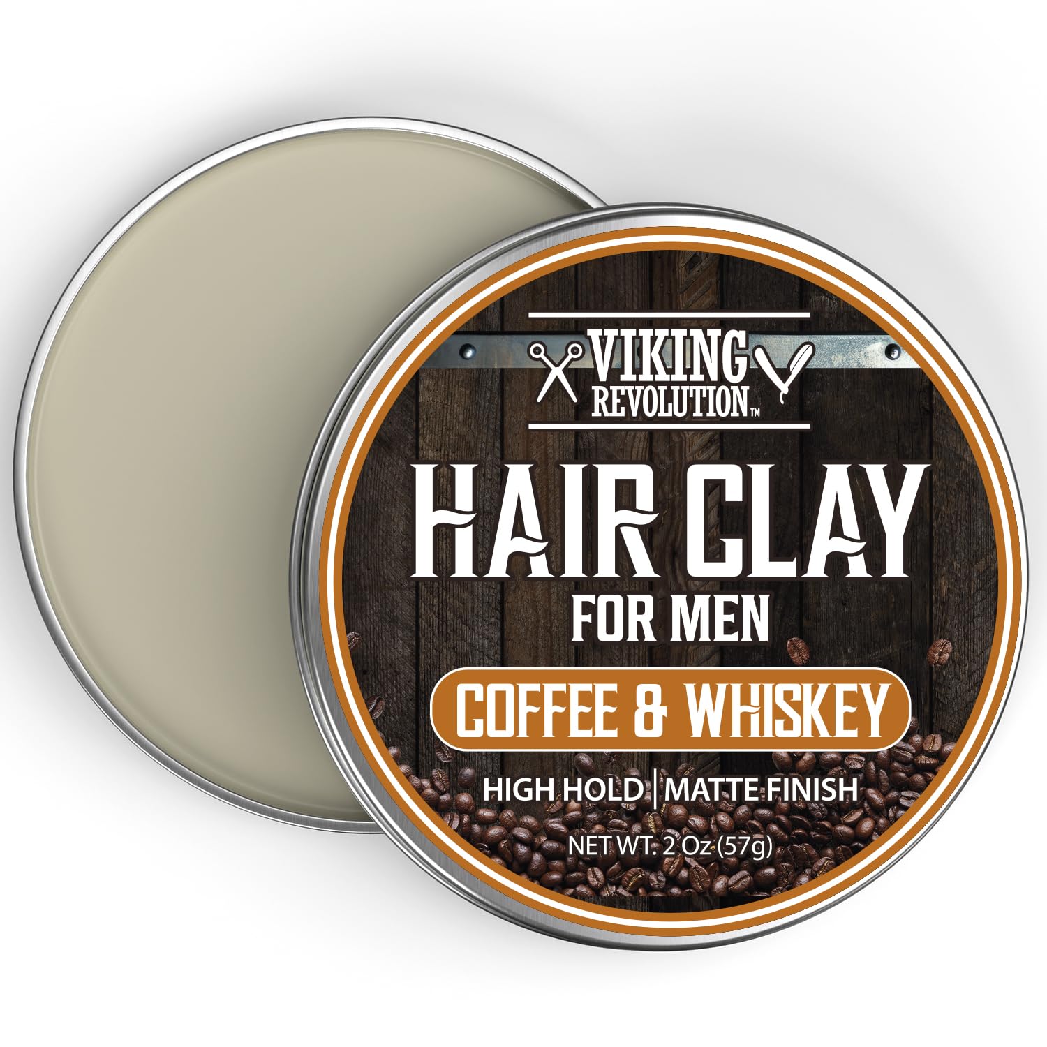 Viking Revolution Coffee & Whiskey Hair Clay for Men - Matte Finish, Texturizing Clay Pomade for Men with Jojoba Oil and Vitamin E - Effortless Hair Styling Cream - Strong Hold, Natural Finish (2 oz)