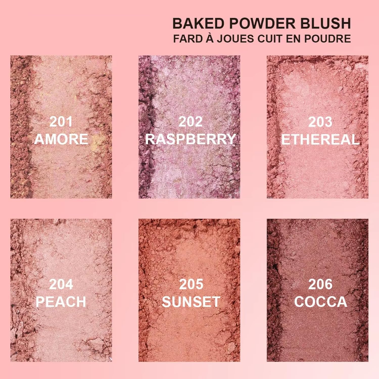 - SILKY BAKED BLUSH: Satin and shimmery shades in peach and rose. This Blush is lightweight, yet offers great color. Easy to apply and goes on smooth. Naturally water resistant and lets your skin breathe. With this blush, your rosy glow comes with healthier skin in the long-term.