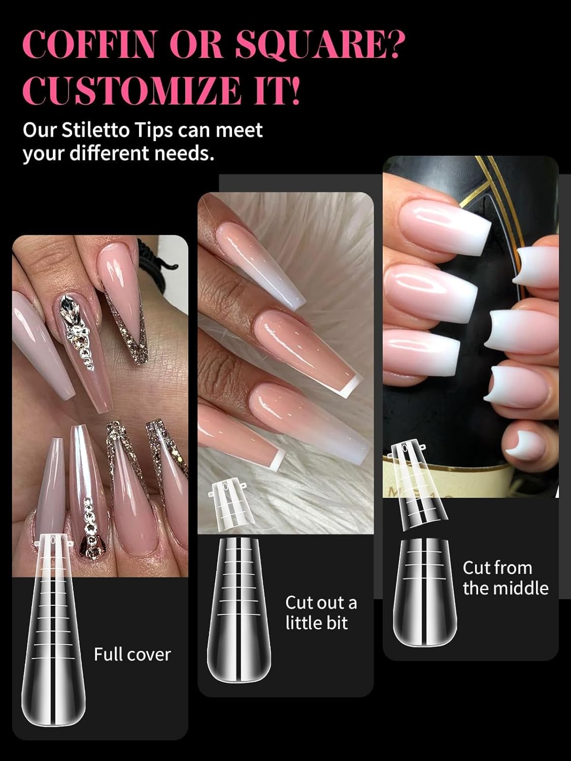 - 【12 Shapes with 12 Sizes】Both dual nail extension molds tips and French dual sticker silicone pads come in 8 style shapes and 12 sizes, each is engraved with numbers "0-11" for easy to recognize,which is convenient for you to design the nail length you want. And each size of long nail tips is separated by a small grid, a total of 12 grids, so they're easy and convenient to choose the suitable size to meet your nail's need