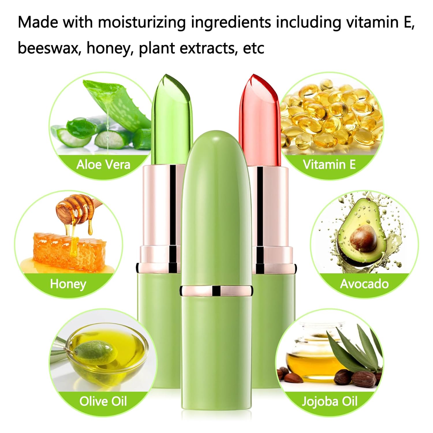 3PCS Aloe Vera Color Changing Lipstick,Crystal Jelly Tinted Lip Balm,Magic Color Change Lipgloss Set,Hydrating Lip Balm,Long-lasting Waterproofing Lipstick for Makeup