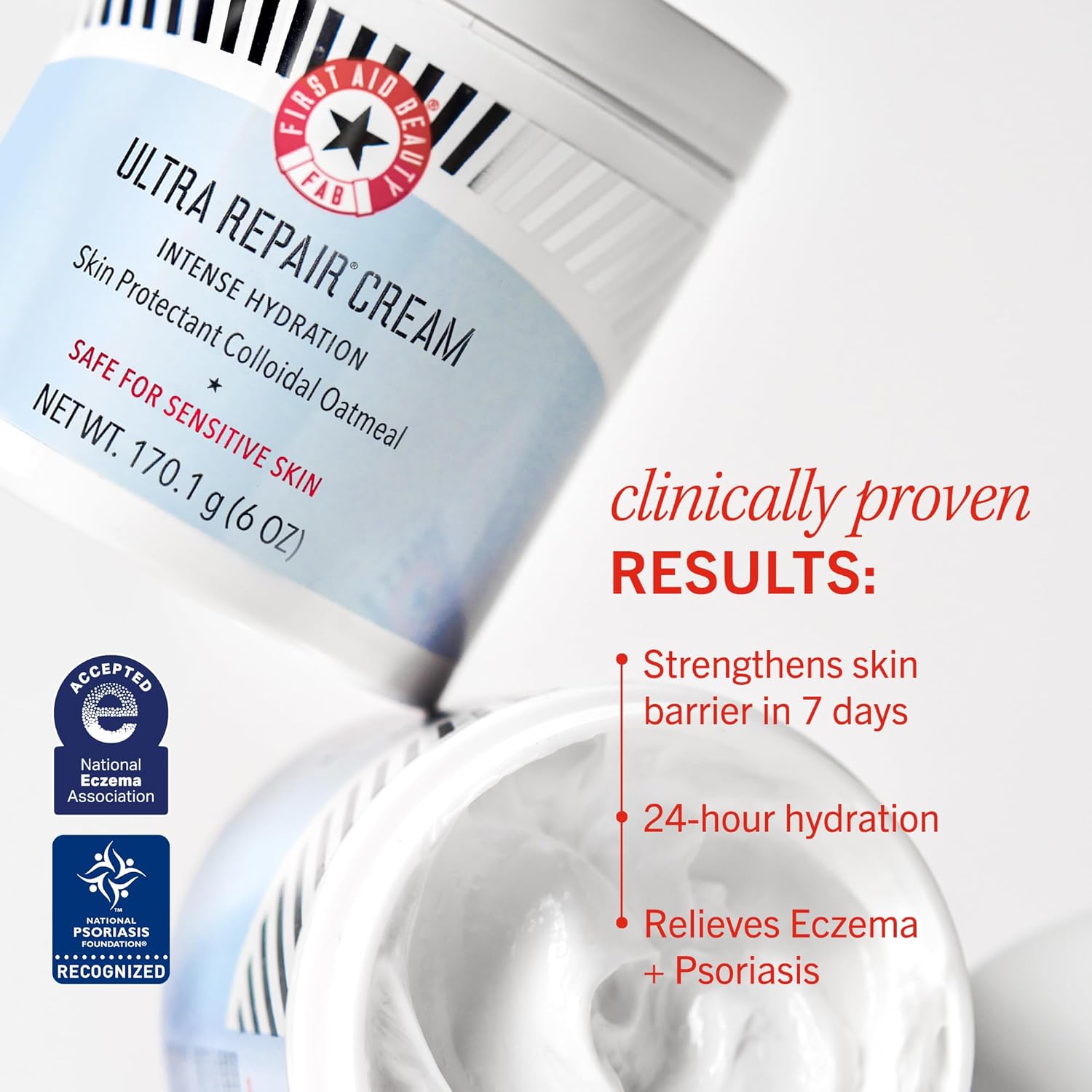 First Aid Beauty - Ultra Repair Cream, Intense Hydration Whipped Colloidal Oatmeal, Clinically Proven to Strengthen Skin Barrier in 7 Days + Helps Relieve Eczema, Luxury Moisturizer (6oz, 2ct)