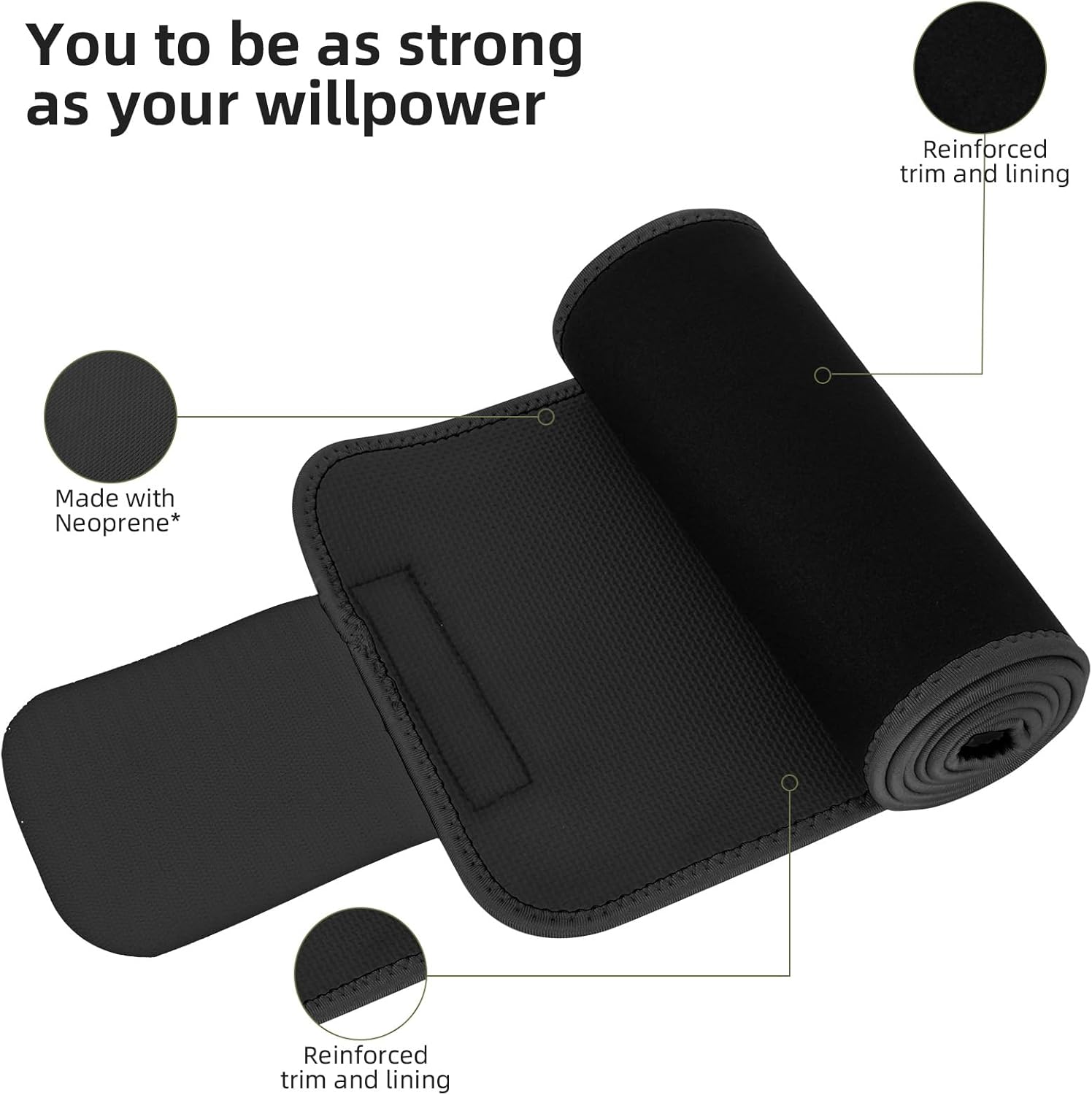 • [Made to Fit] Sweat belts for weight loss have (M,L,XL) three sizes so that, Designed to accommodate all shapes and sizes,our durable, reinforced trim and lining, and double velcro because we want to make sure this waist trainer stays your gym buddy for a long time.