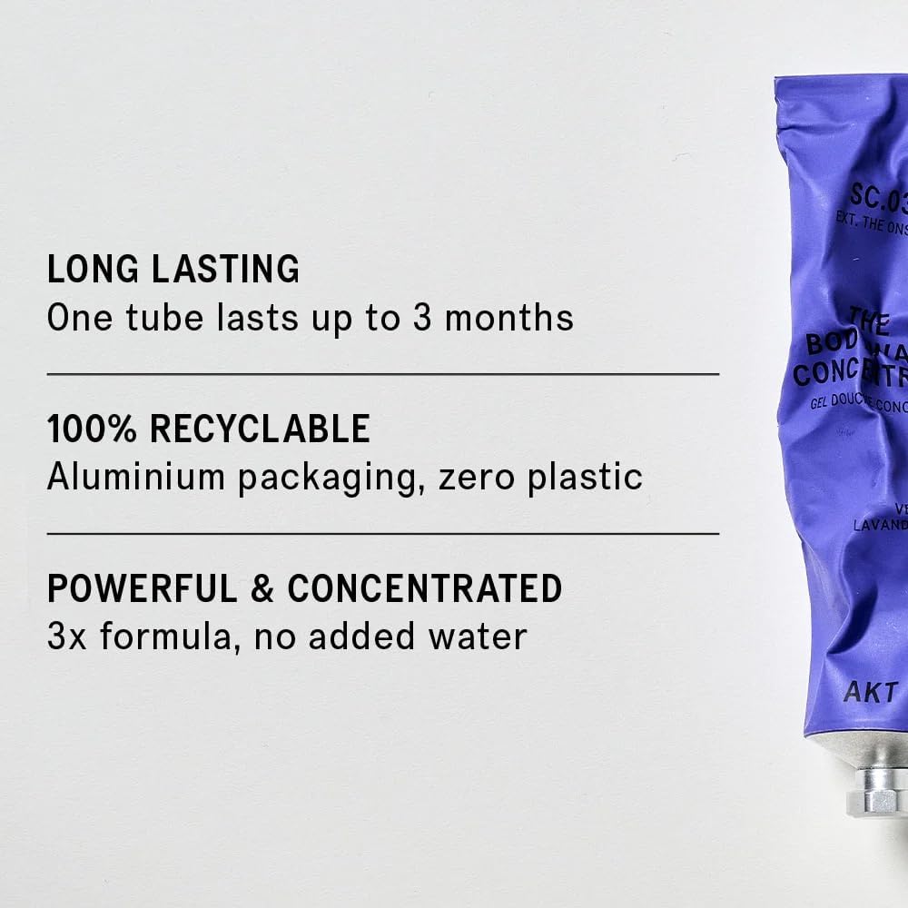 - Waterless, Travel Size Body Wash That Lasts: This sustainable body wash skips the water — so you get 3 months of use from just one TSA-friendly tube. Activate a small amount with water in your shower for rich, creamy foam. Ideal for on-the-go use or minimal-space routines.