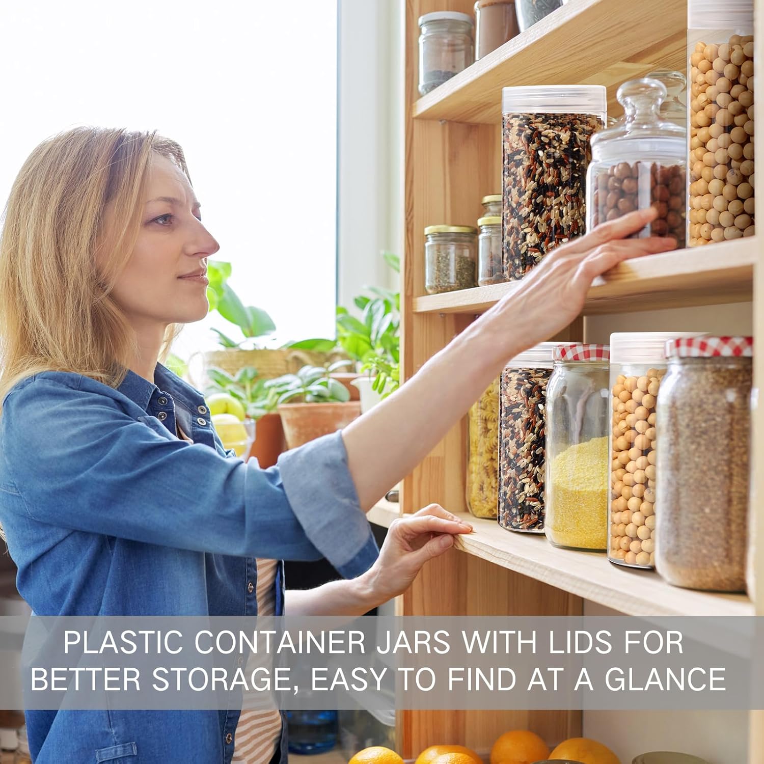 - What You Receive: there are 4 pieces plastic jars with clear screw-on lids; They are durable and refillable, measuring about 12 oz in capacity