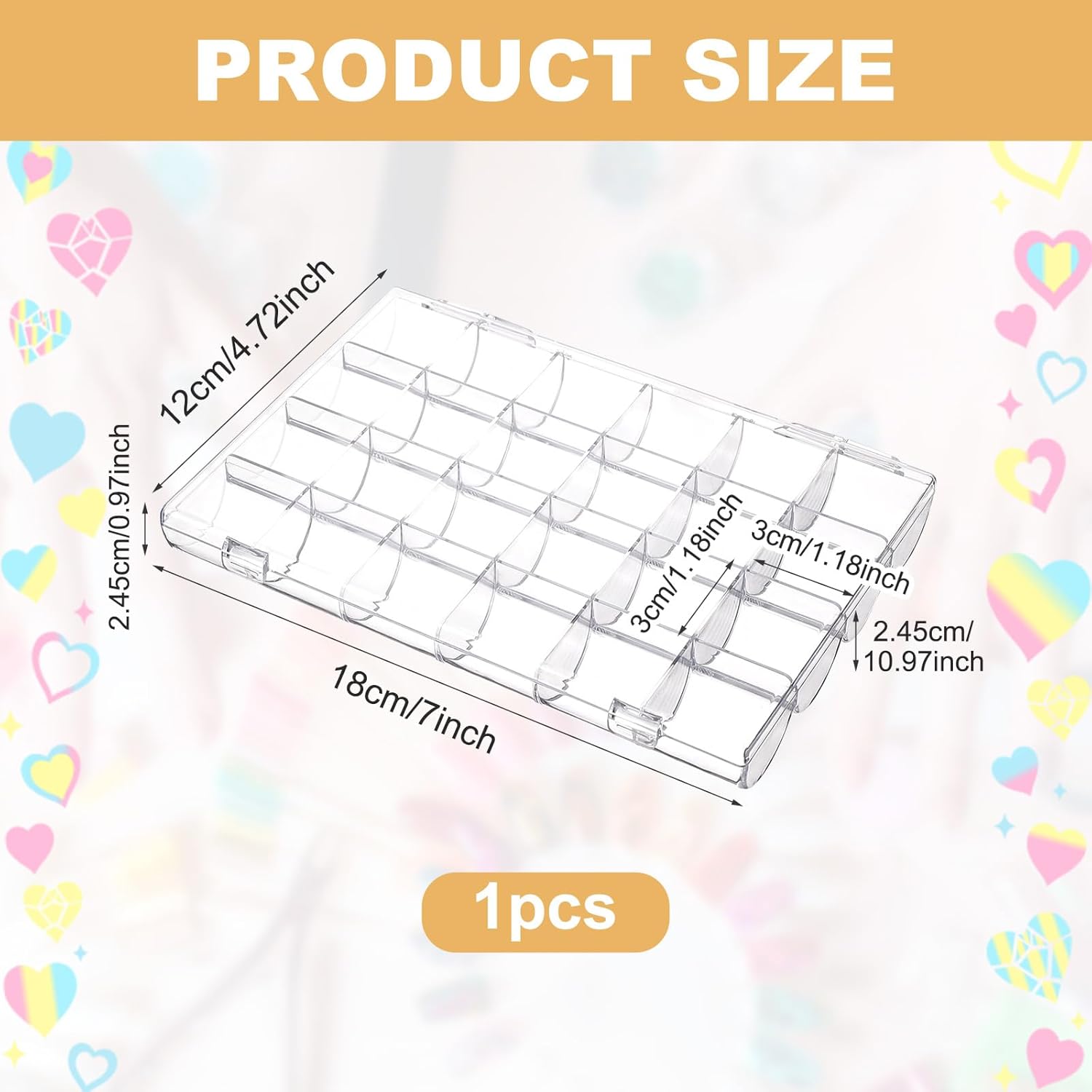 - 【Small Body & Large Capacity】This clear organizer measures jewelry box 18 x 12 x 2.45cm/7 x 4.72 x 0.97inch,inner grid 3 x 3 x 2.45cm/1.18 x 1.18 x 0.97inch,designed with 24 individual compartments for storing small parts or supplies,which will be a great choice especially for storage lovers, manicurists and DIY bead lovers!